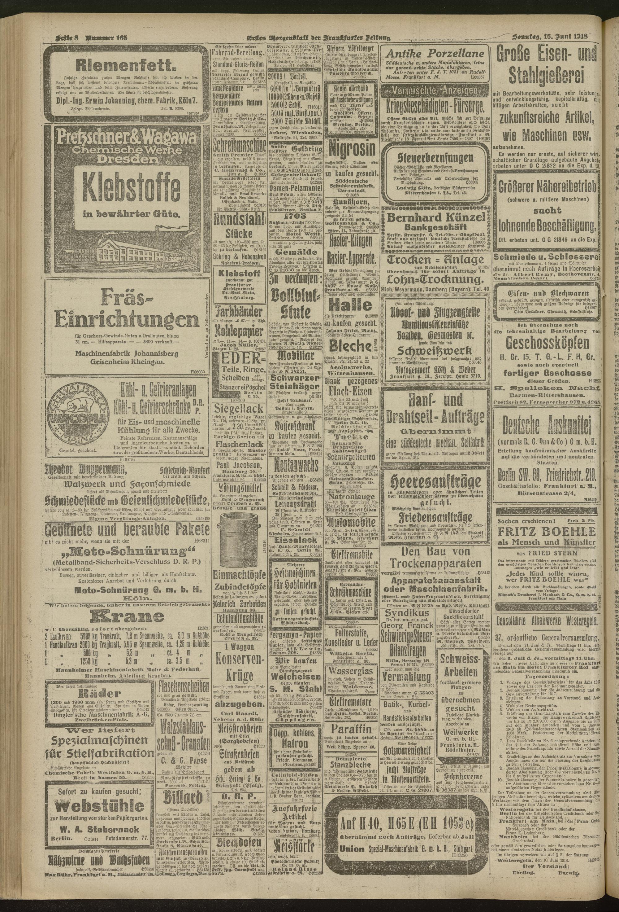 16.06.1918 = Nr. 165. Erstes Morgenblatt