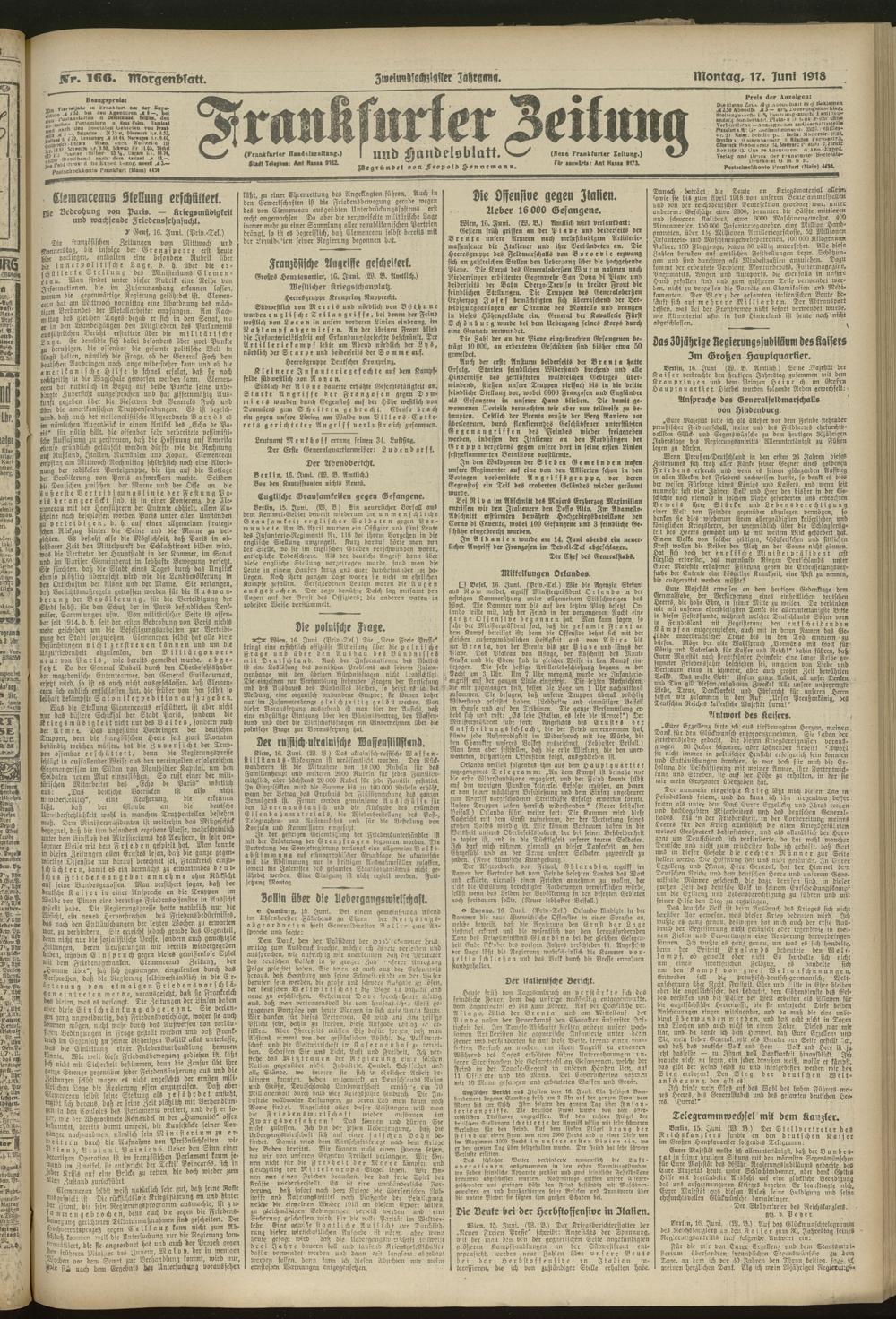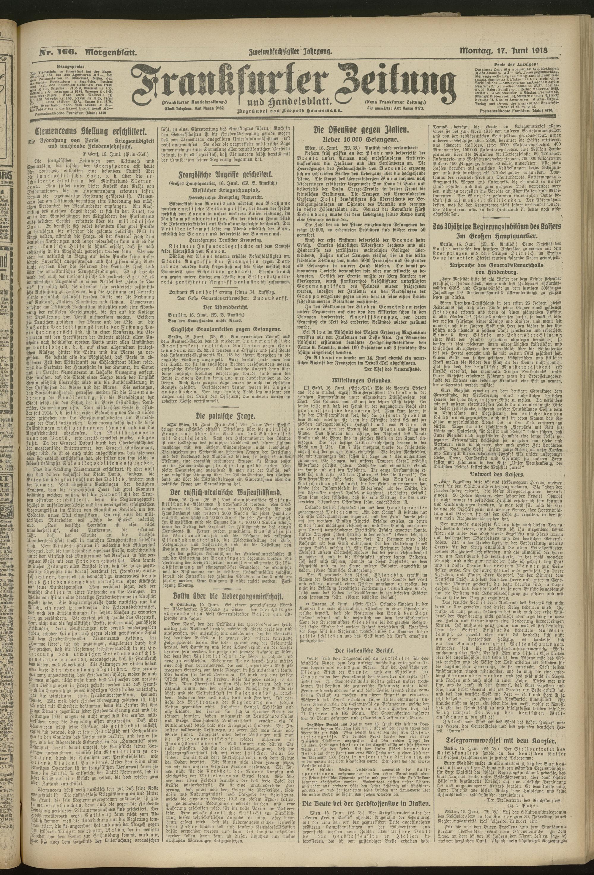 17.06.1918 = Nr. 166. Morgenblatt