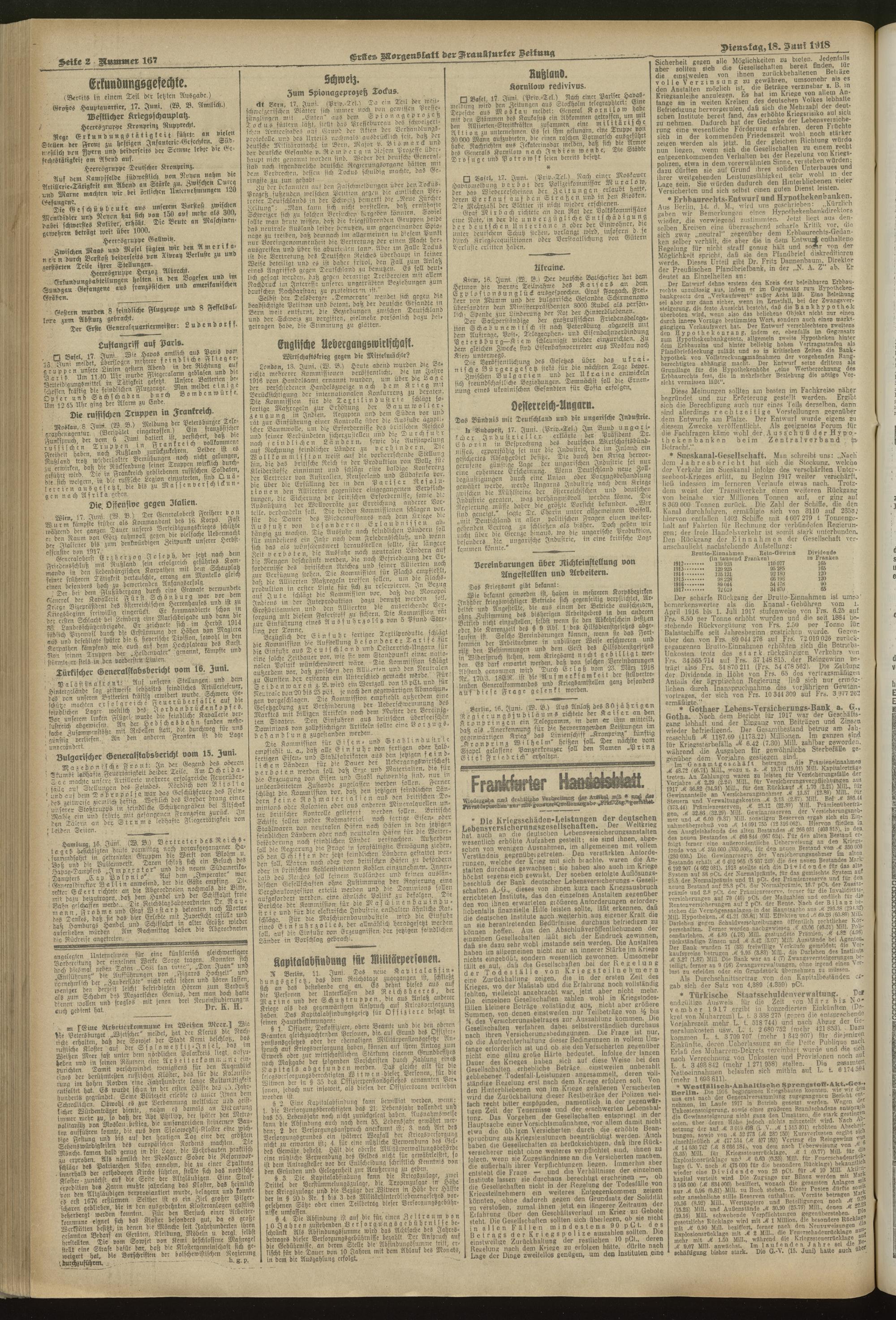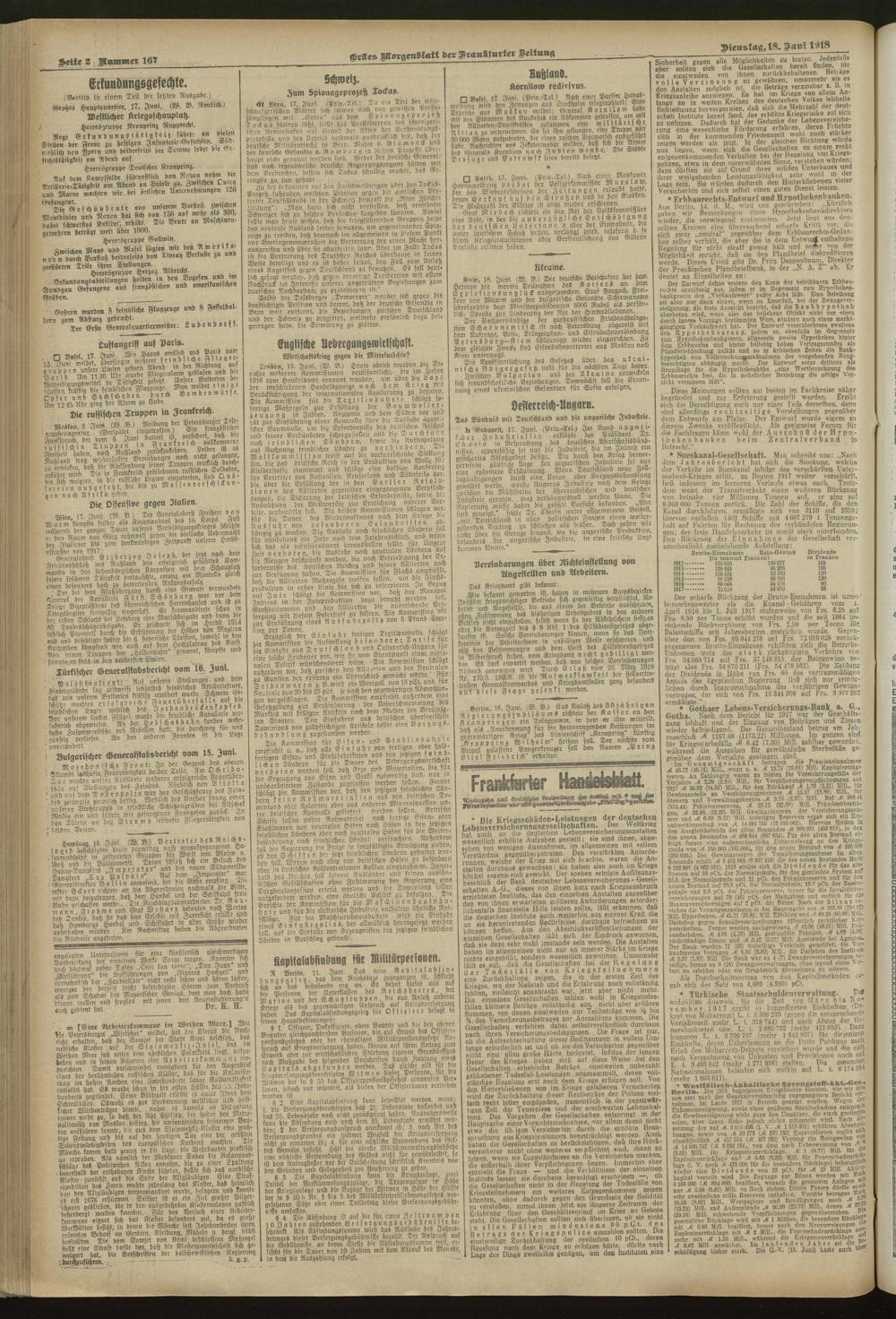 18.06.1918 = Nr. 167. Erstes Morgenblatt