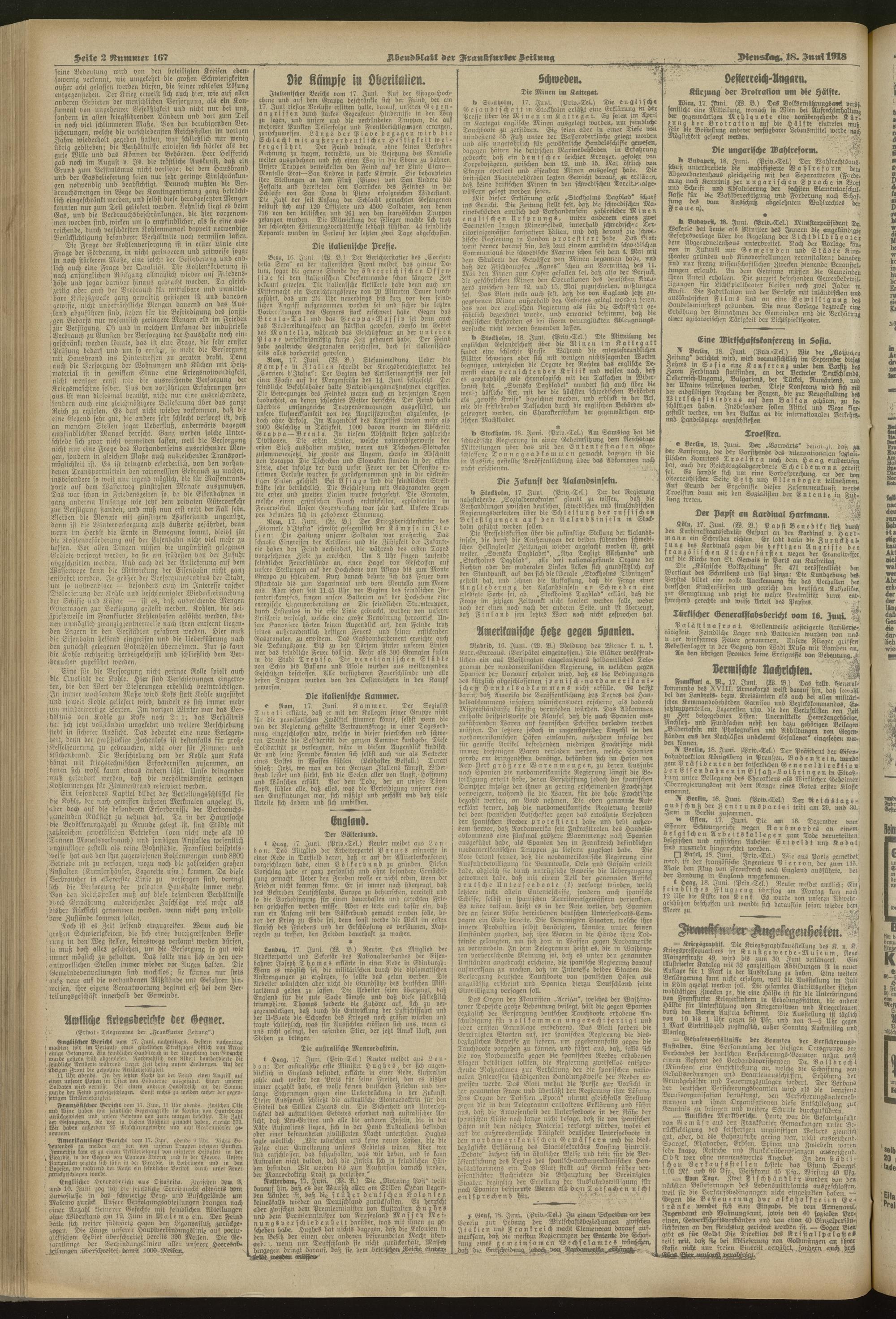 18.06.1918 = Nr. 167. Abendblatt