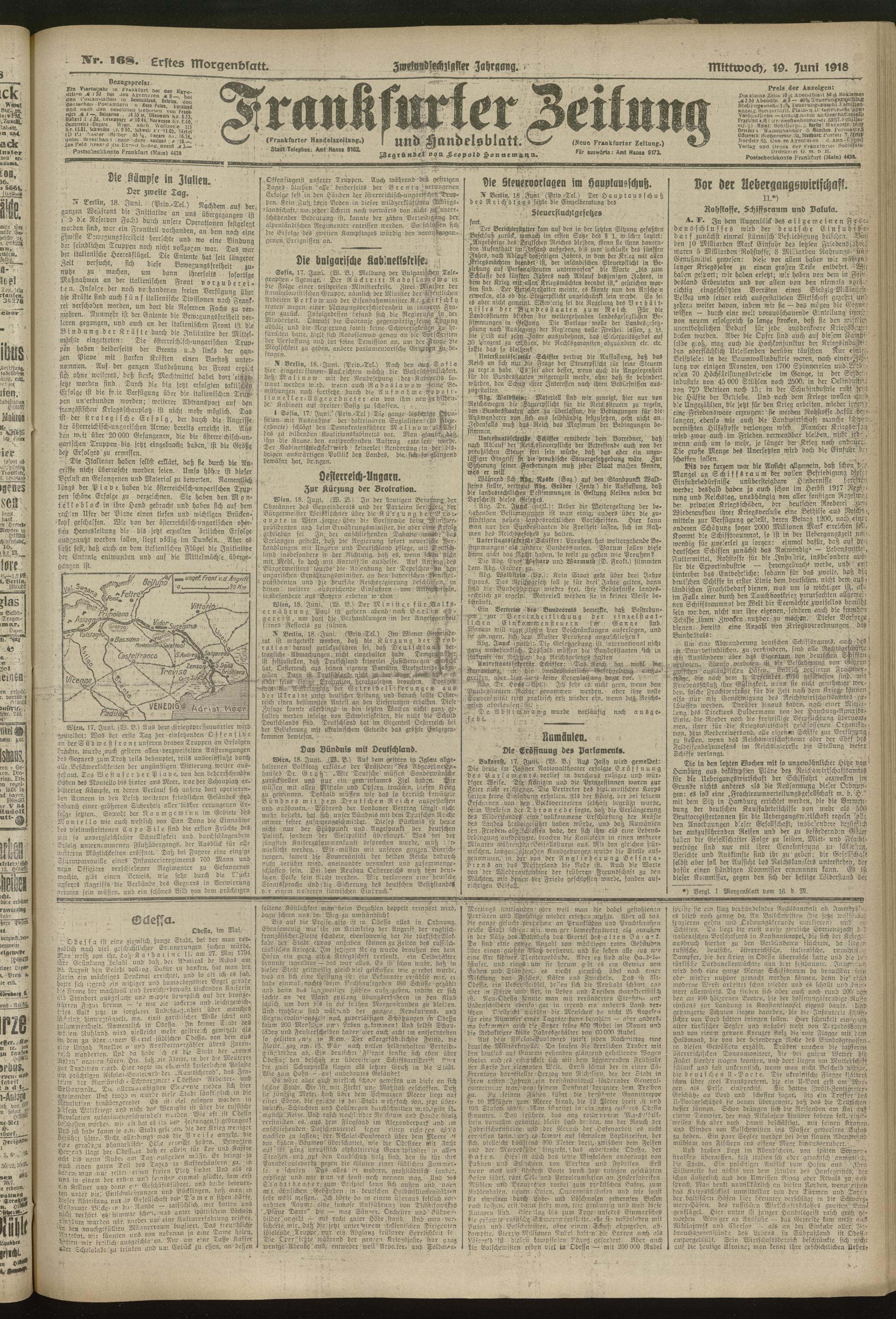19.06.1918 = Nr. 168. Erstes Morgenblatt