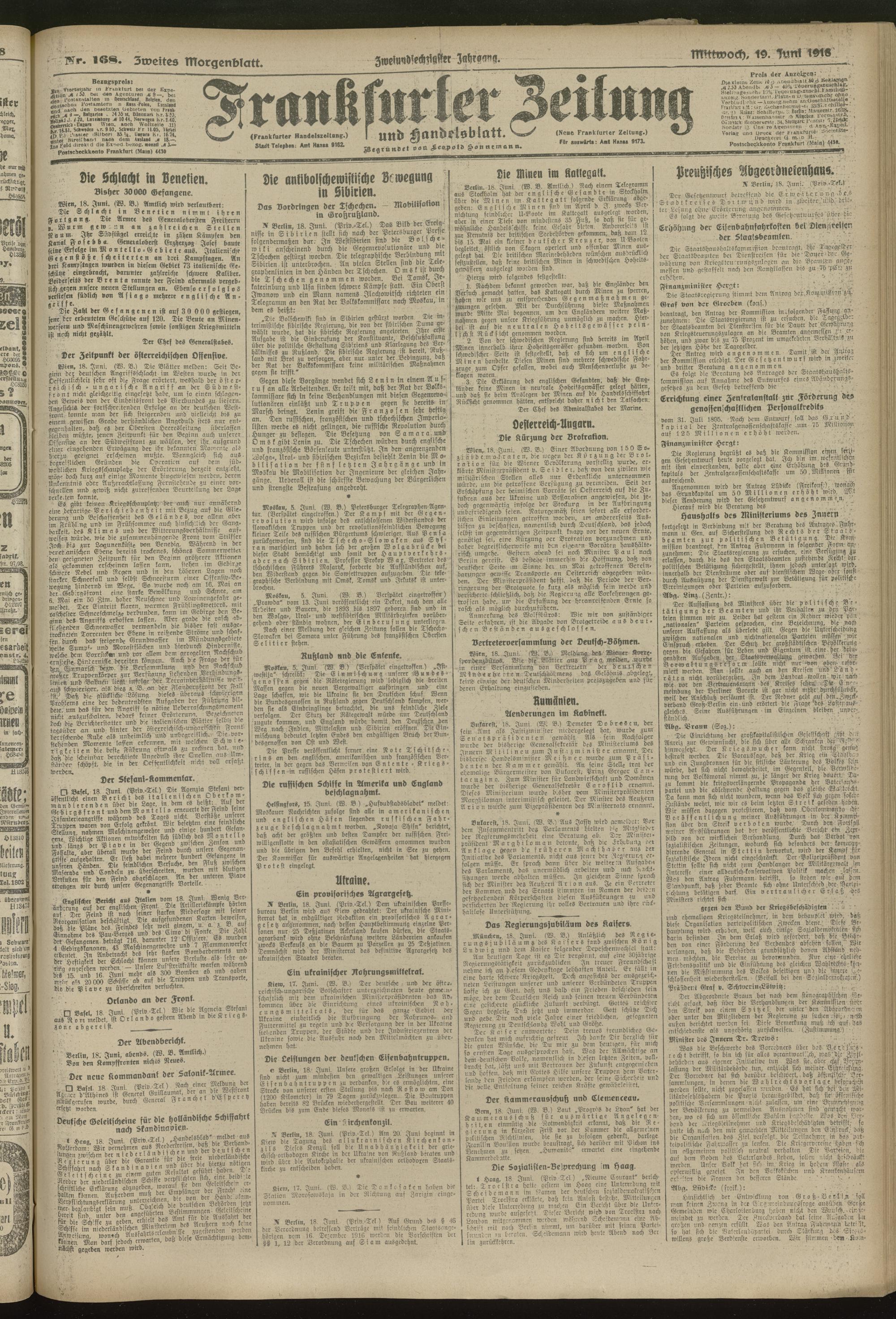 19.06.1918 = Nr. 168. Zweites Morgenblatt