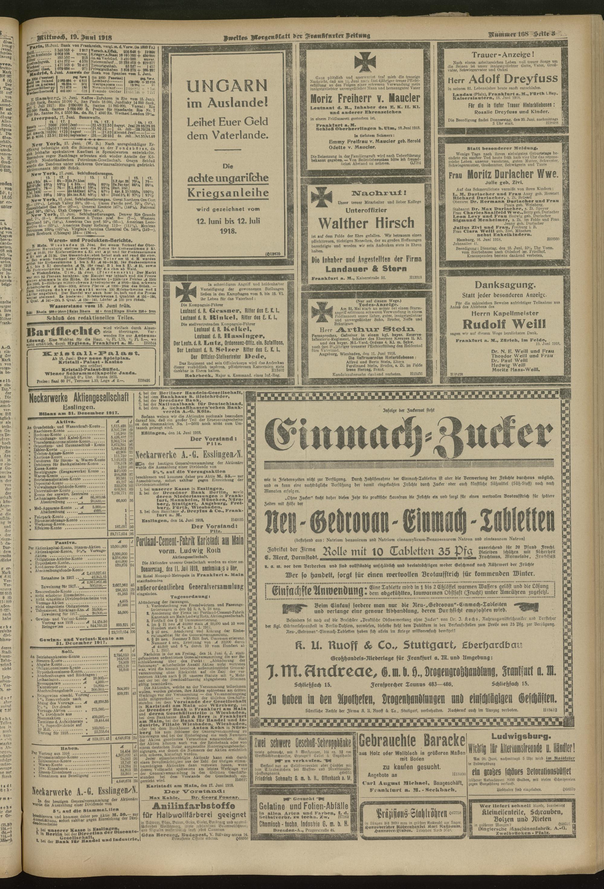 19.06.1918 = Nr. 168. Zweites Morgenblatt