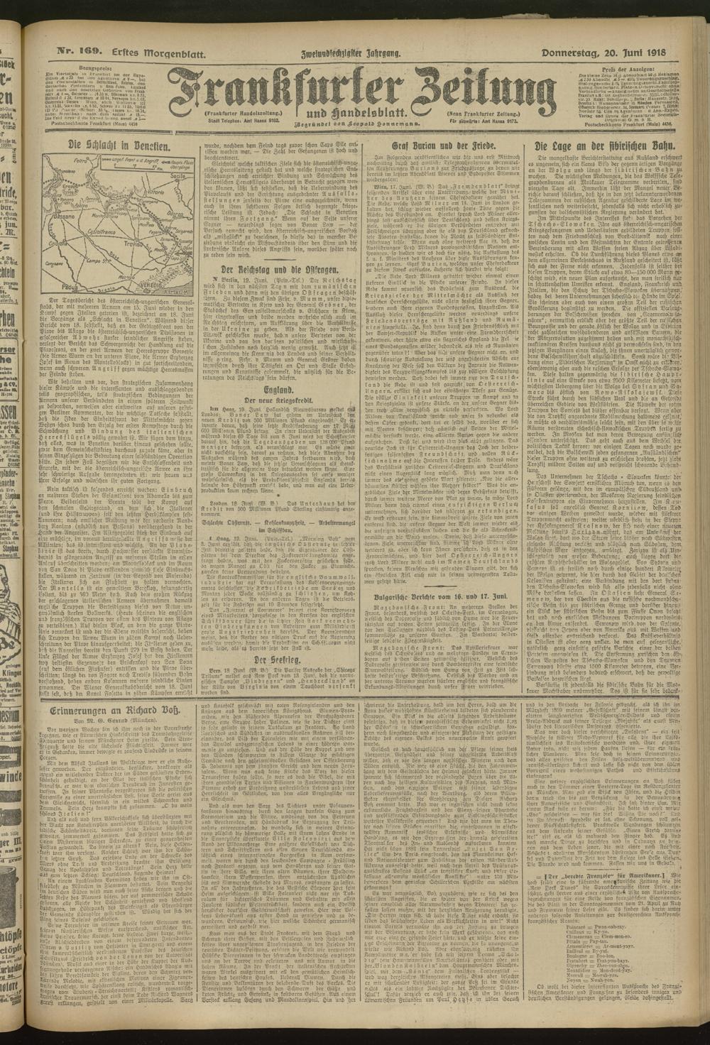 20.06.1918 = Nr. 169. Erstes Morgenblatt