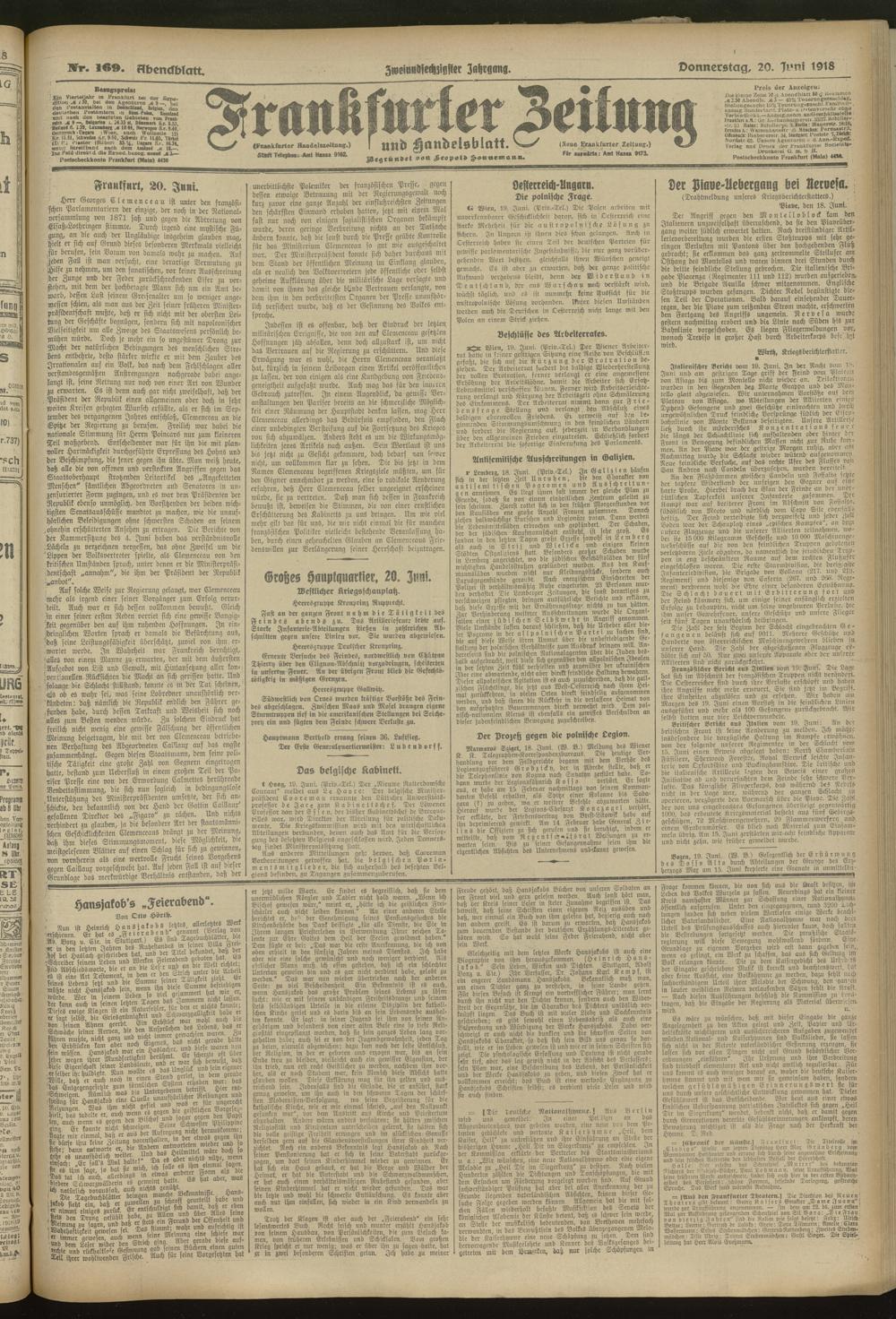 20.06.1918 = Nr. 169. Abendblatt