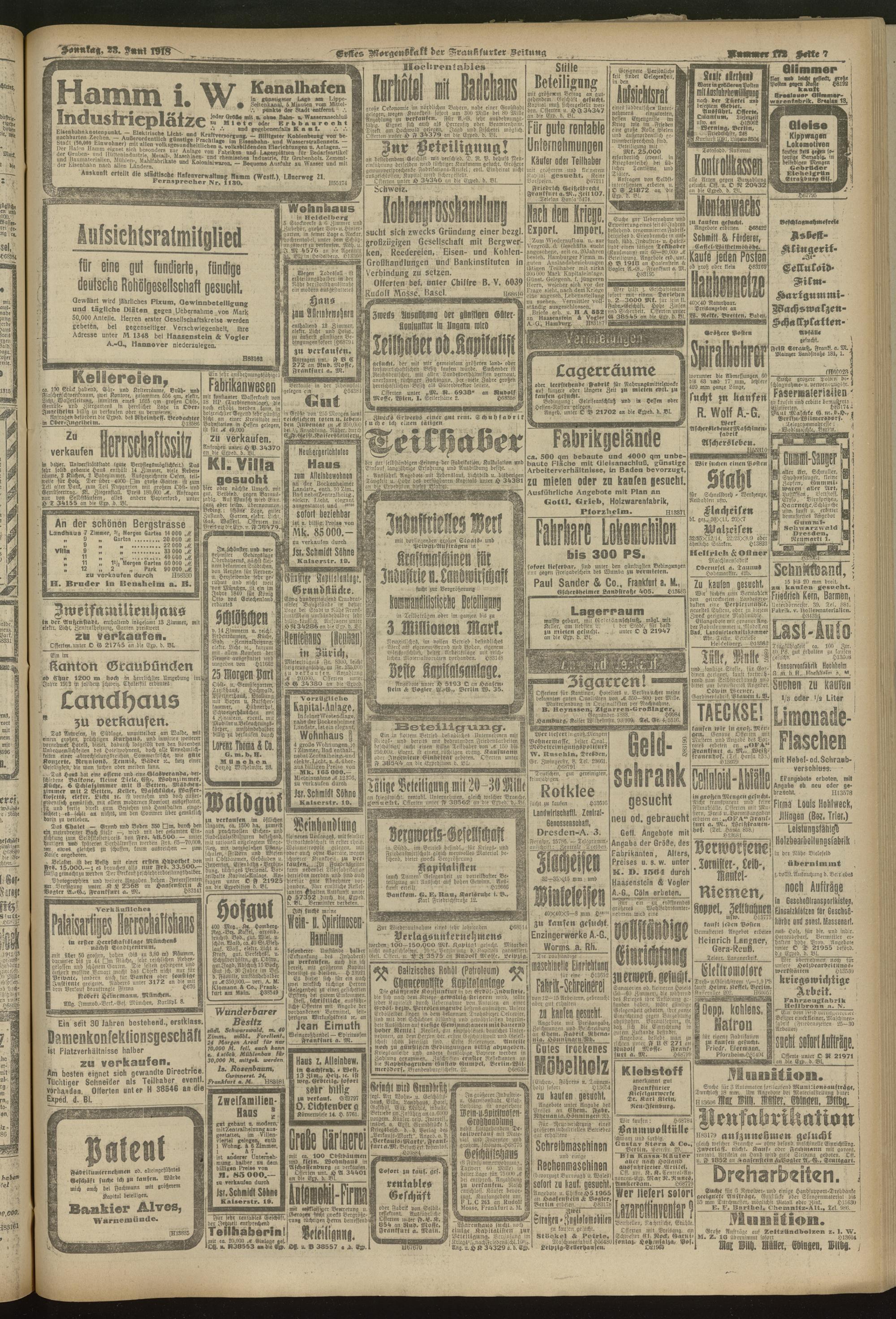 23.06.1918 = Nr. 172. Erstes Morgenblatt