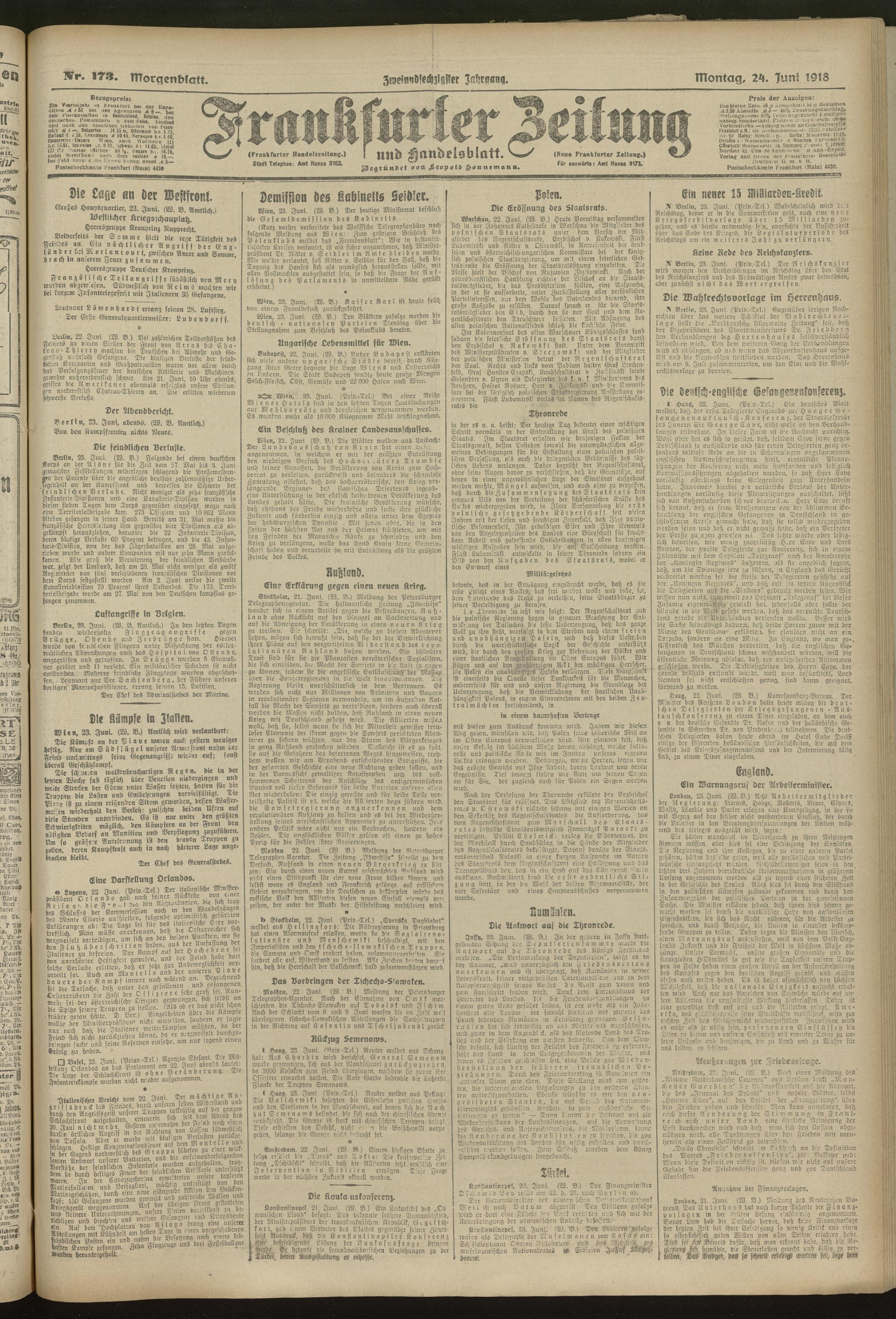 24.06.1918 = Nr. 173. Morgenblatt