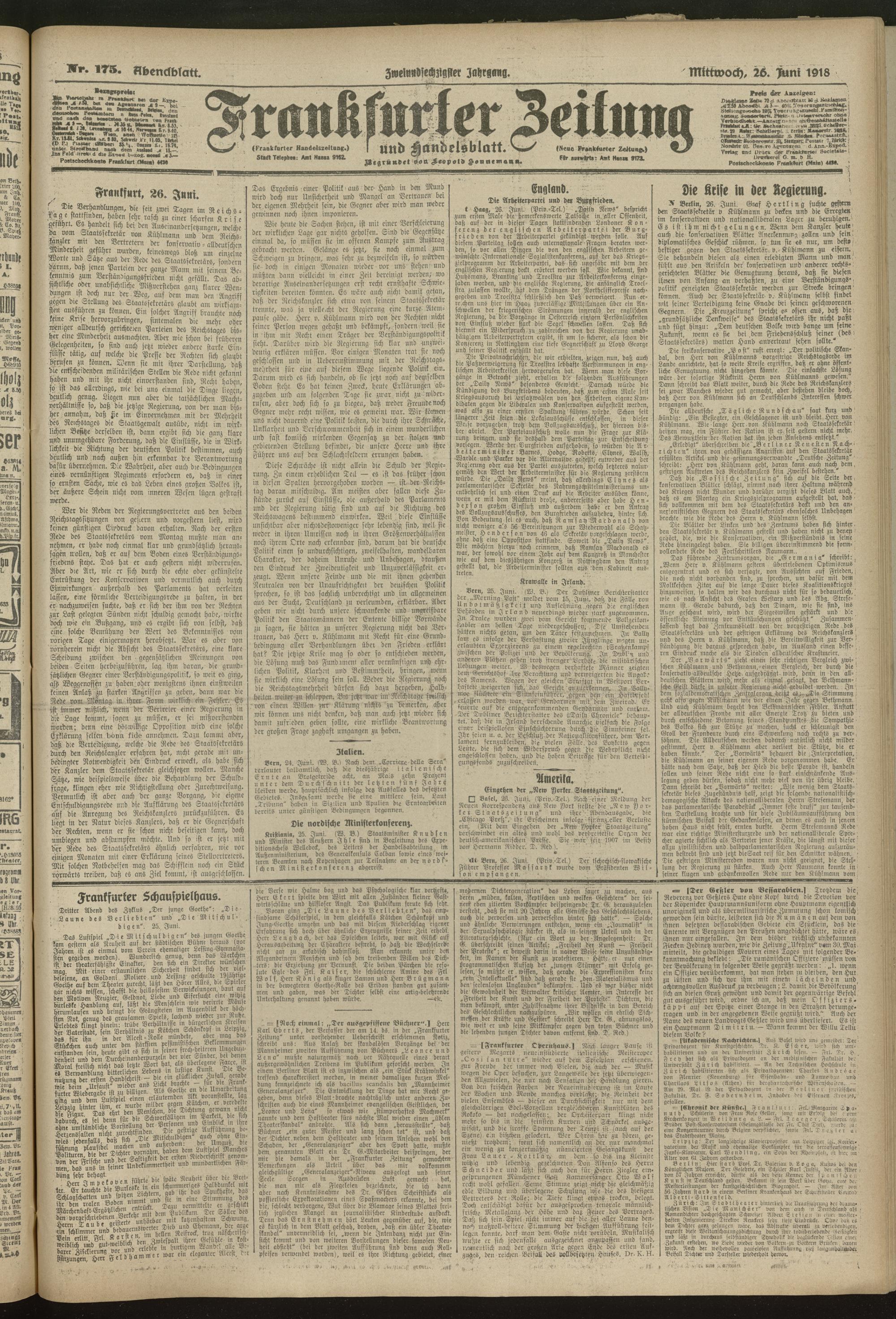 26.06.1918 = Nr. 175. Abendblatt