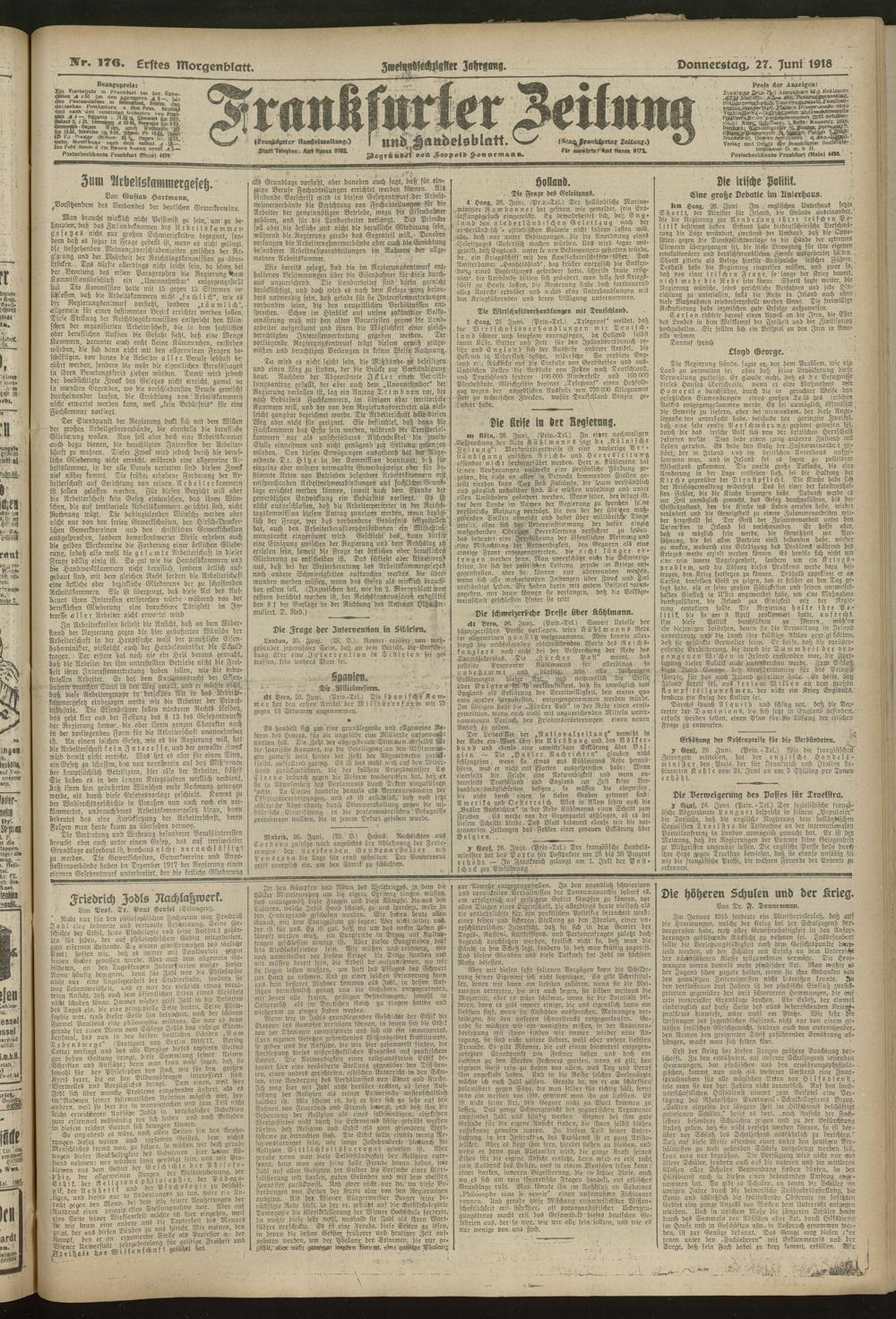 27.06.1918 = Nr. 176. Erstes Morgenblatt