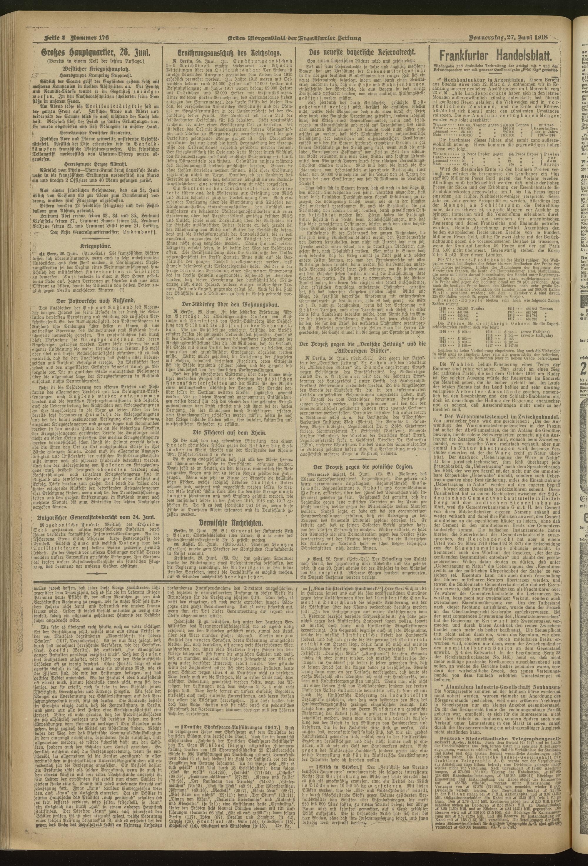 27.06.1918 = Nr. 176. Erstes Morgenblatt