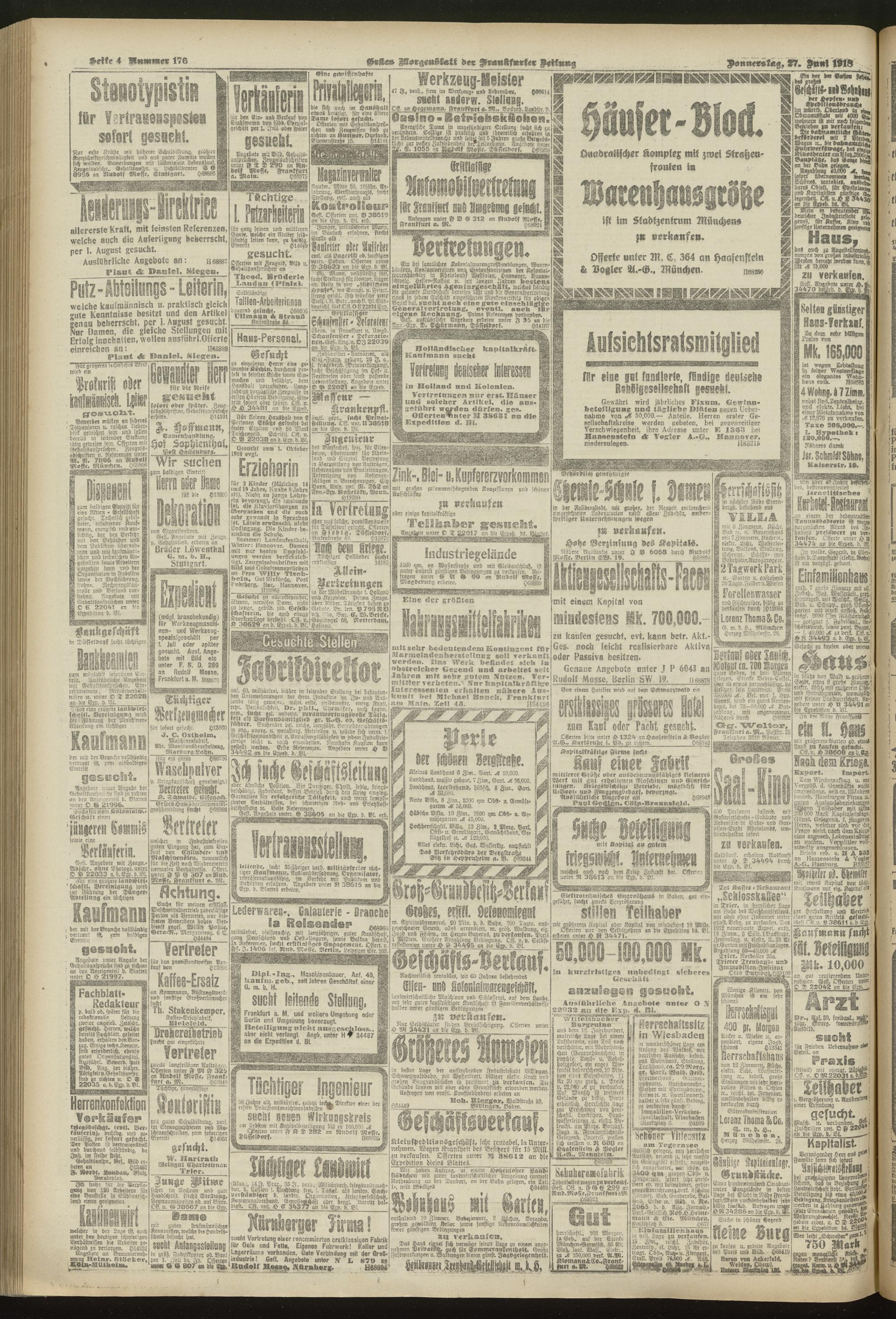 27.06.1918 = Nr. 176. Erstes Morgenblatt
