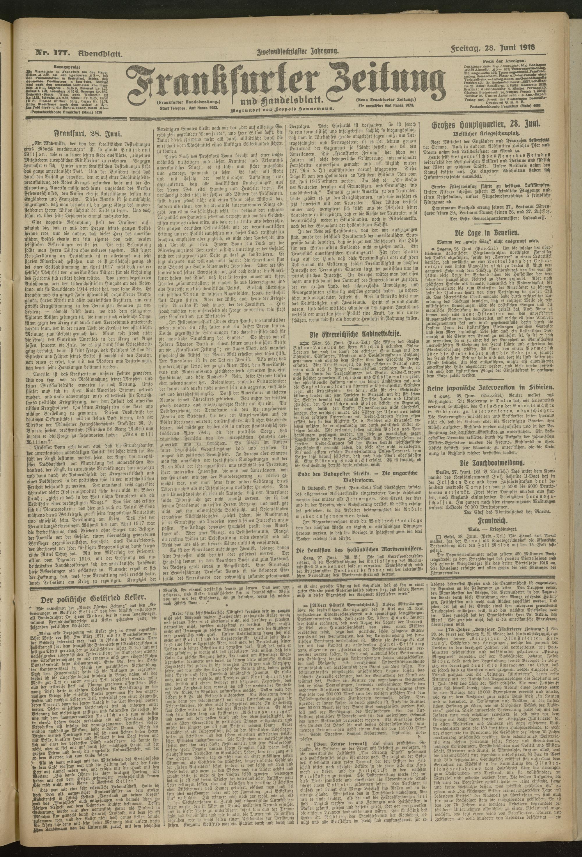 28.06.1918 = Nr. 177. Abendblatt