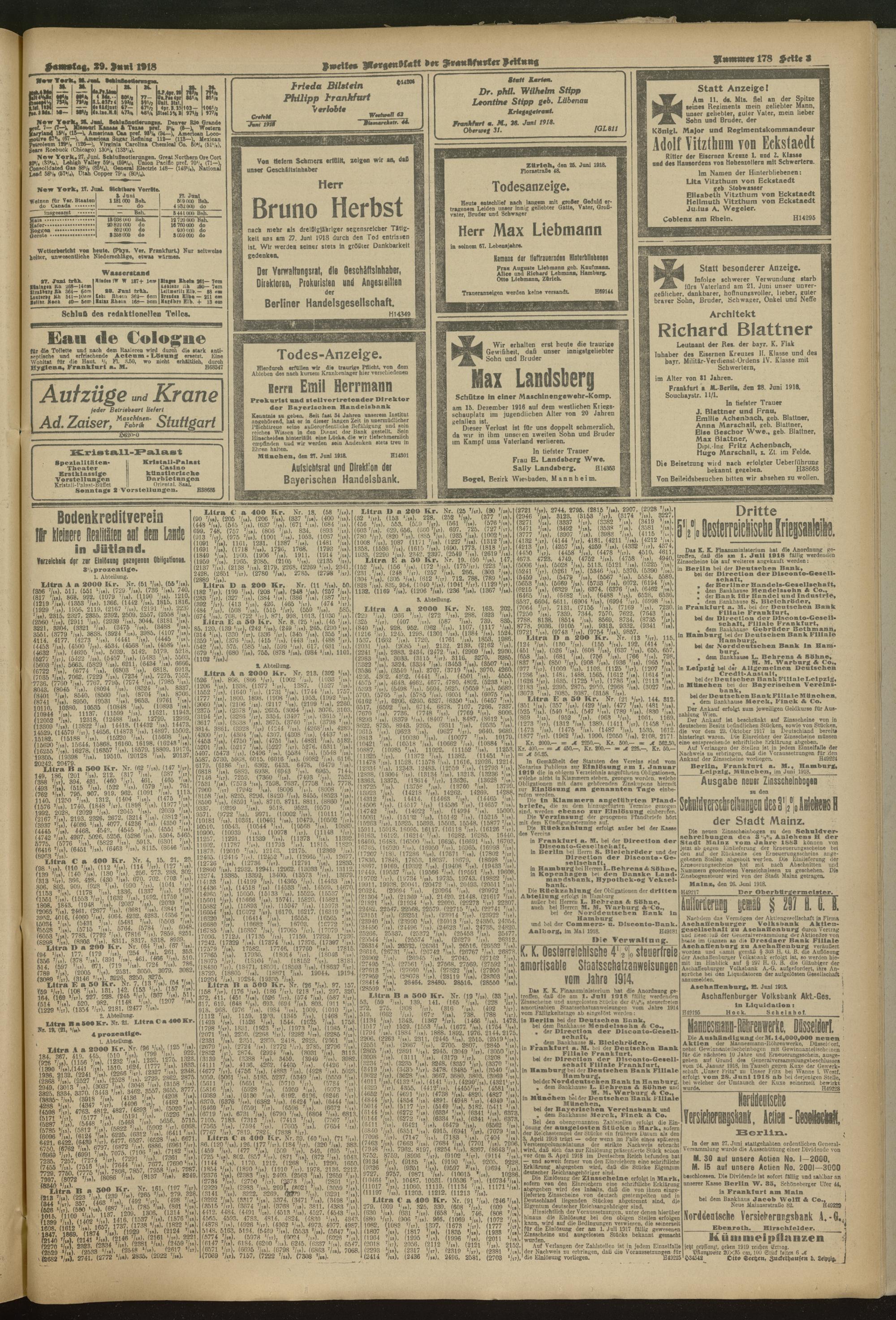 29.06.1918 = Nr. 178. Zweites Morgenblatt