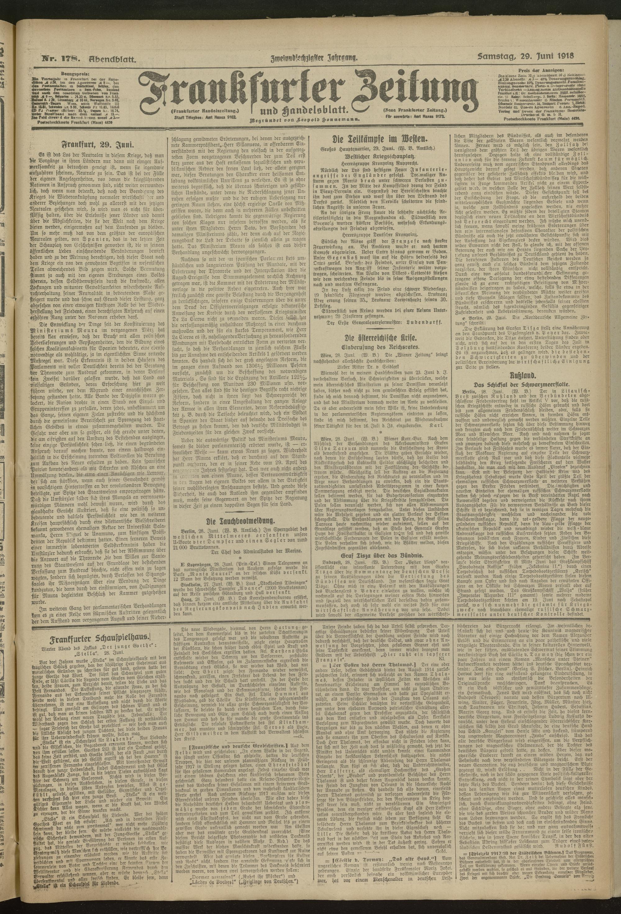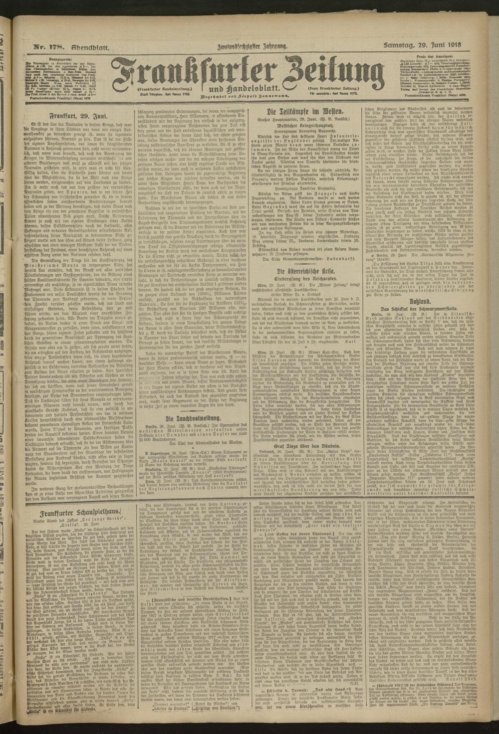 29.06.1918 = Nr. 178. Abendblatt