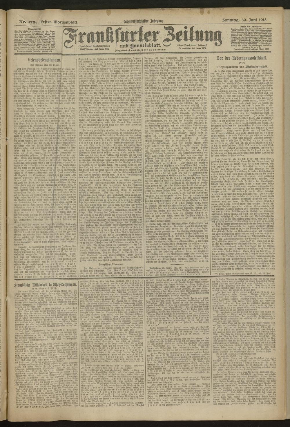 30.06.1918 = Nr. 179. Erstes Morgenblatt