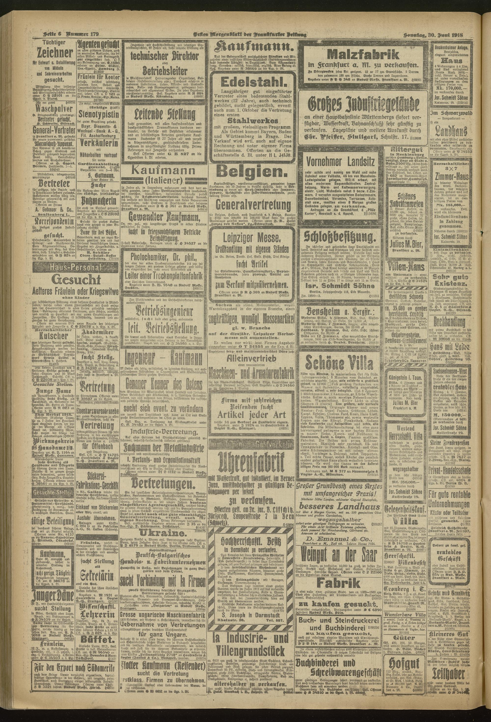 30.06.1918 = Nr. 179. Erstes Morgenblatt