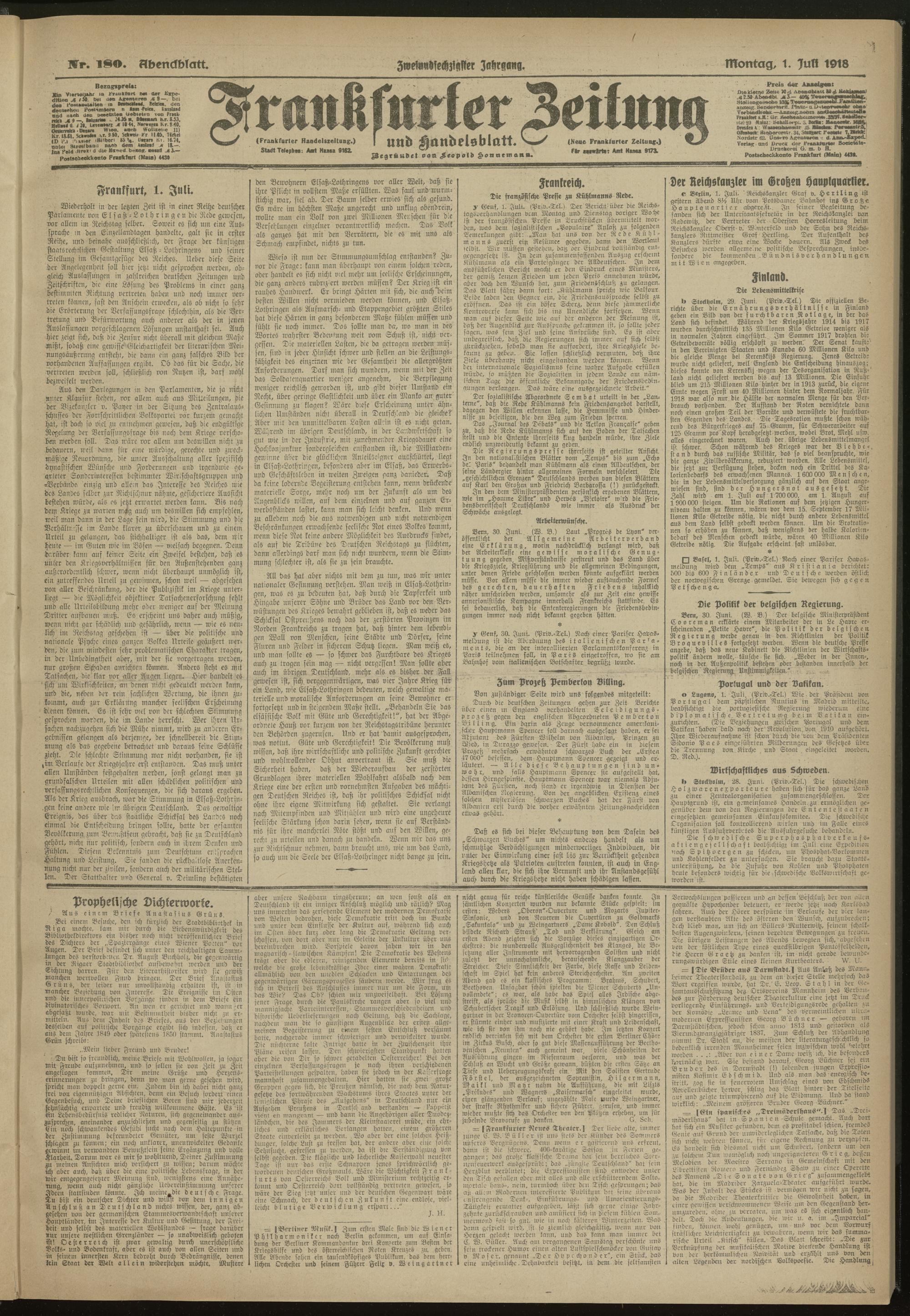 01.07.1918 = Nr. 180. Abendblatt