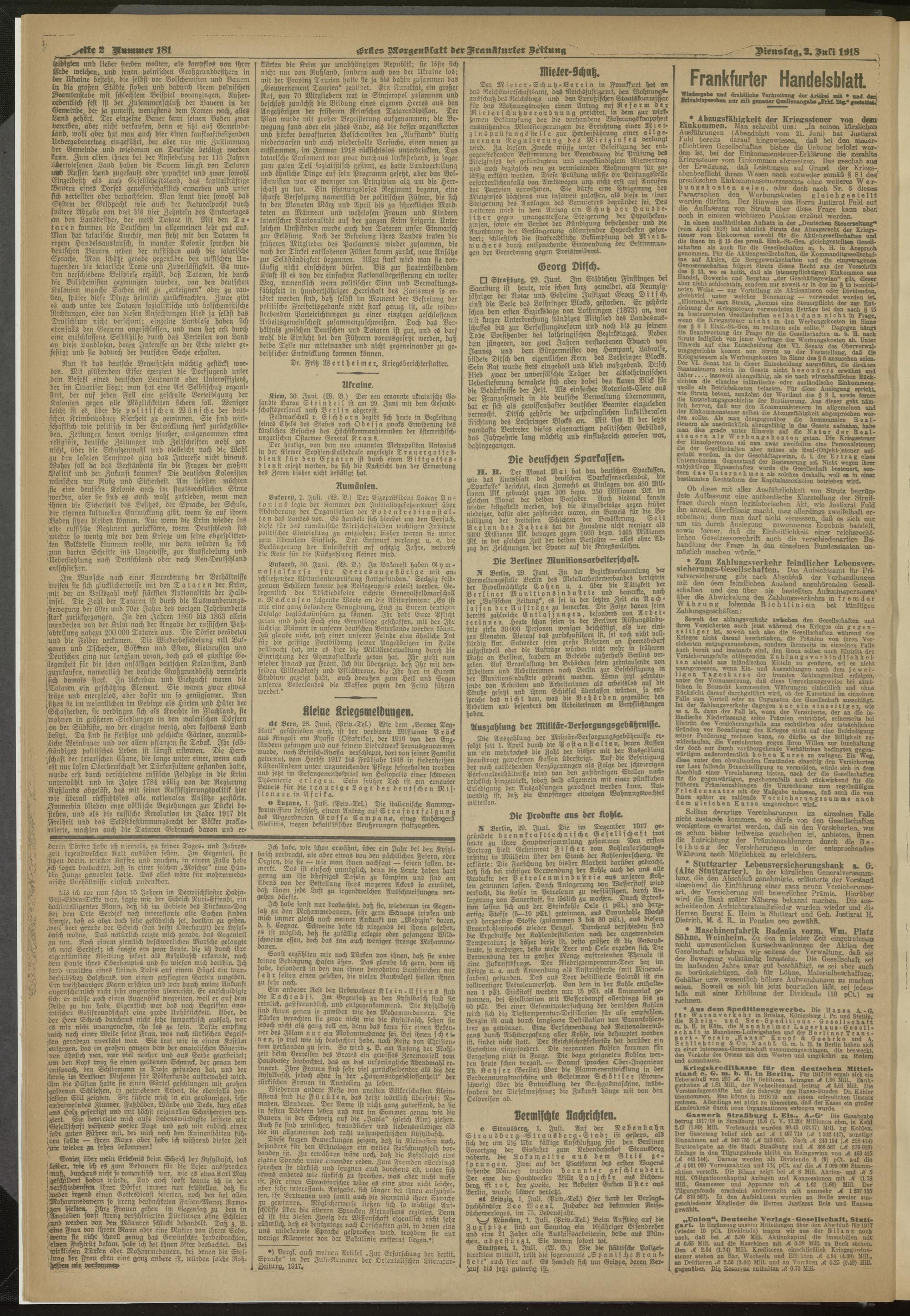 02.07.1918 = Nr. 181. Erstes Morgenblatt