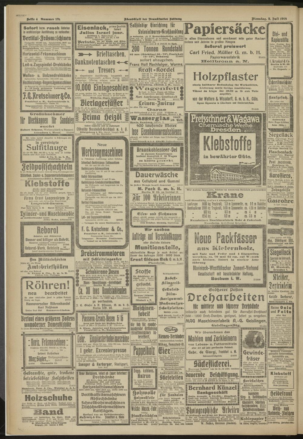 02.07.1918 = Nr. 181. Abendblatt