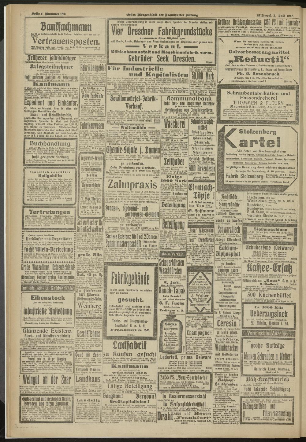 03.07.1918 = Nr. 182. Erstes Morgenblatt