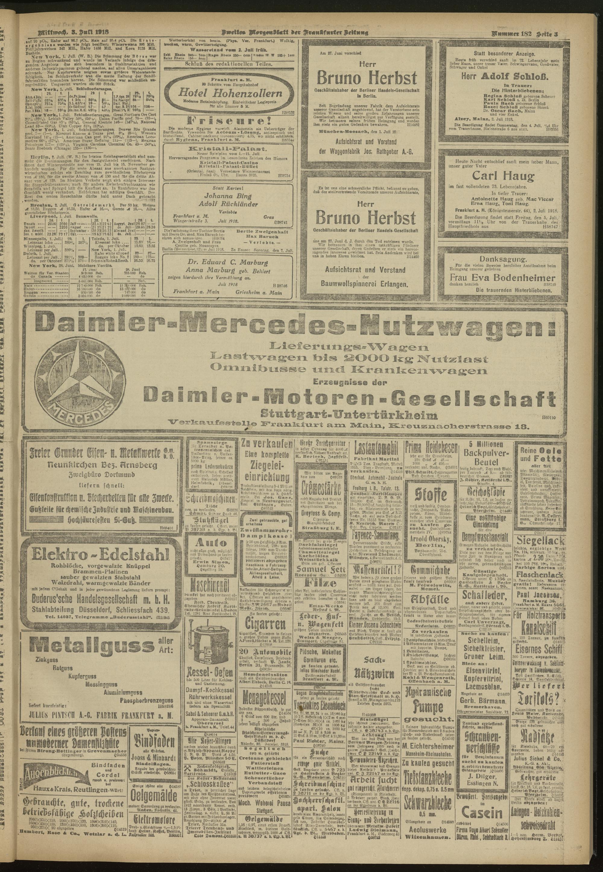 03.07.1918 = Nr. 182. Zweites Morgenblatt