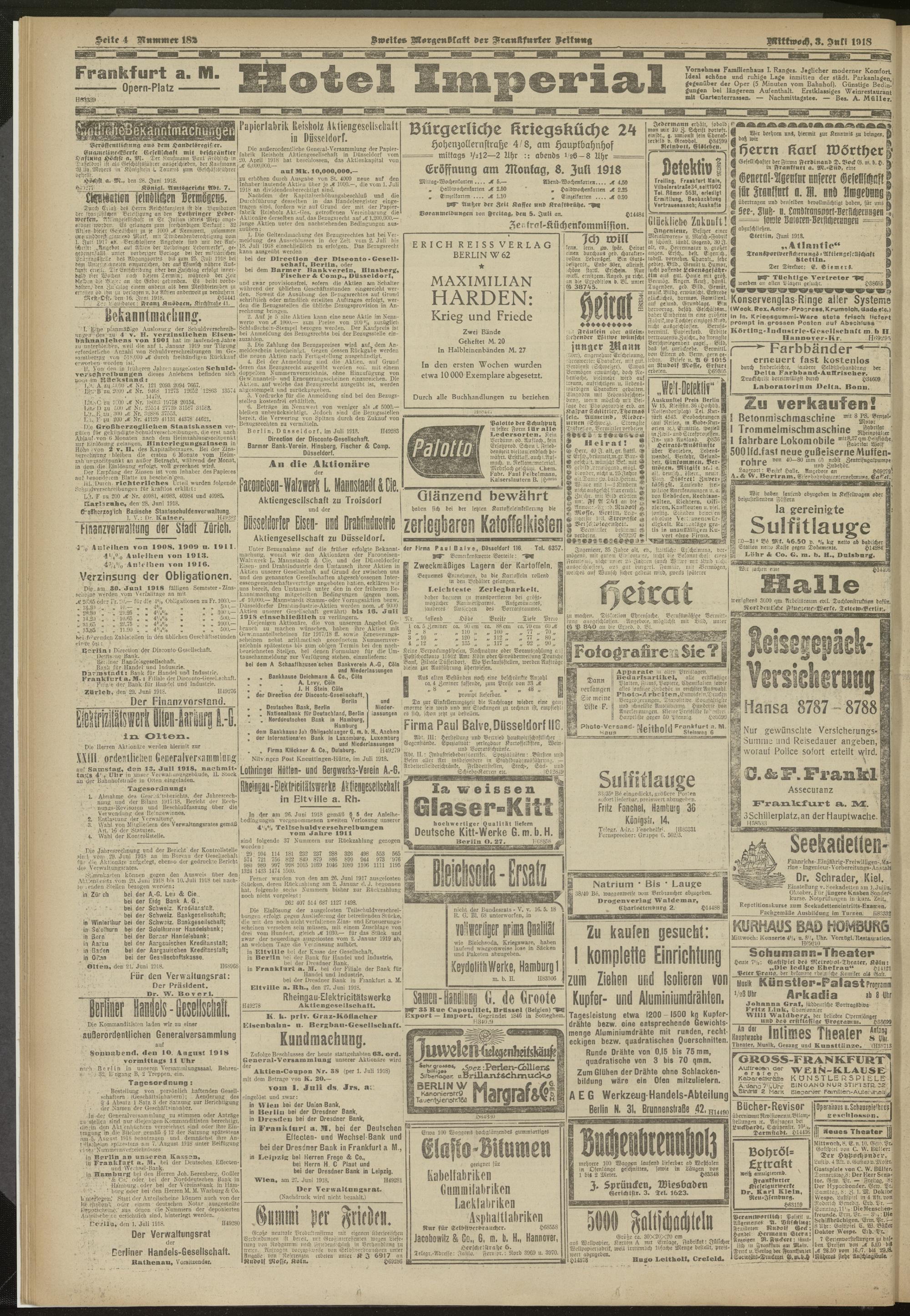 03.07.1918 = Nr. 182. Zweites Morgenblatt