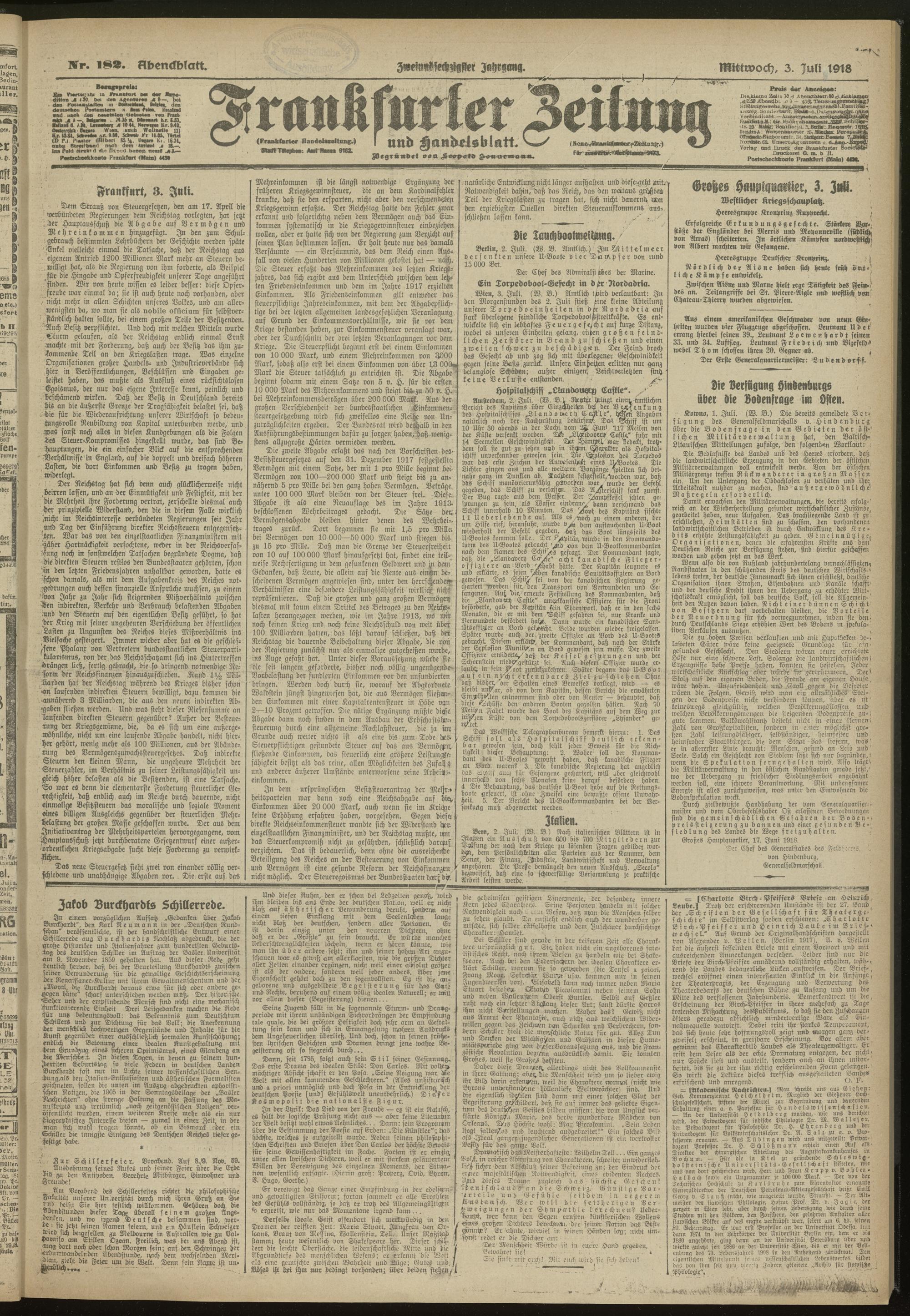 03.07.1918 = Nr. 182. Abendblatt