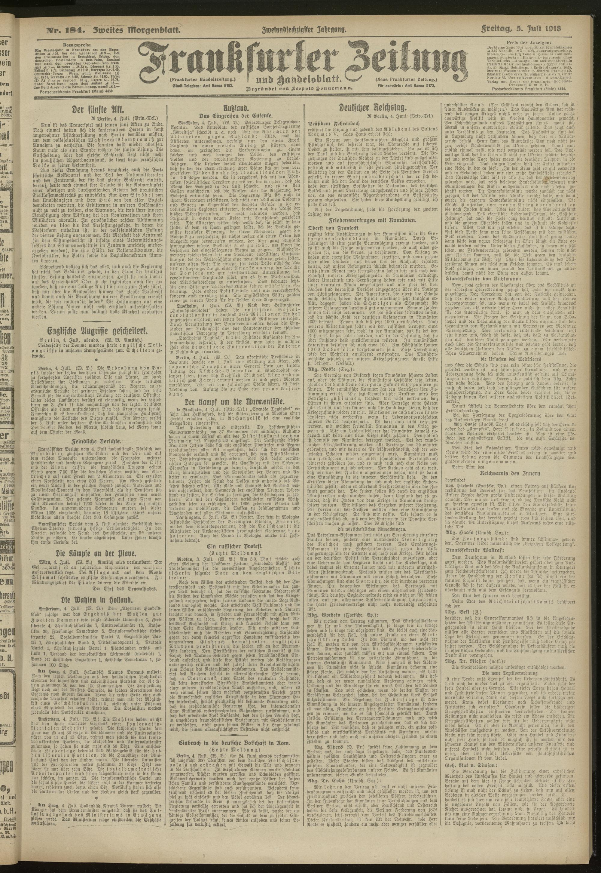 05.07.1918 = Nr. 184. Zweites Morgenblatt