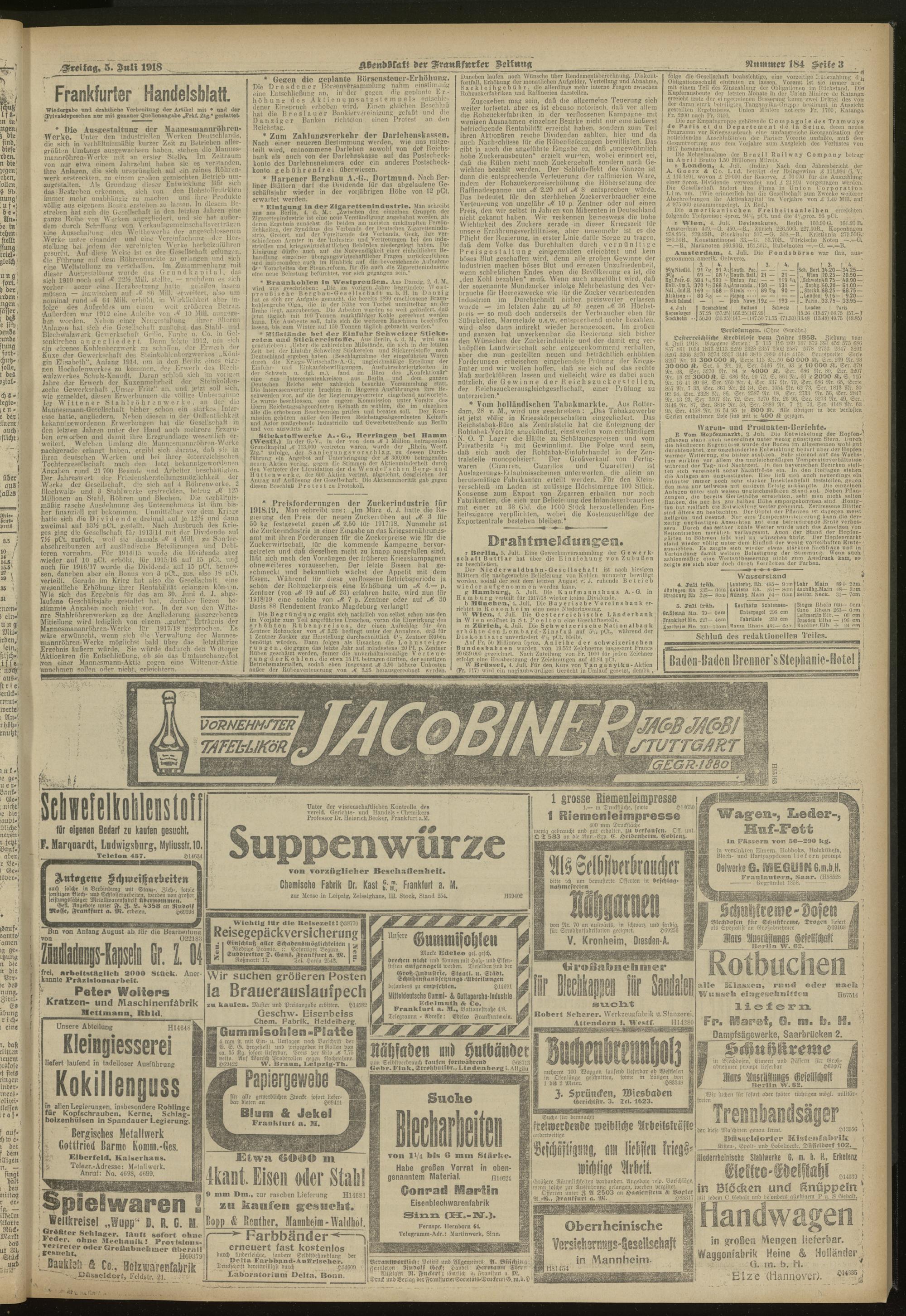 05.07.1918 = Nr. 184. Abendblatt