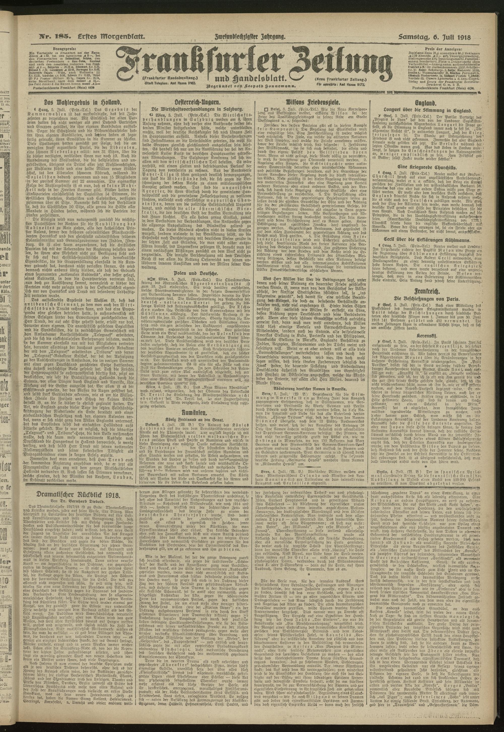 06.07.1918 = Nr. 185. Erstes Morgenblatt