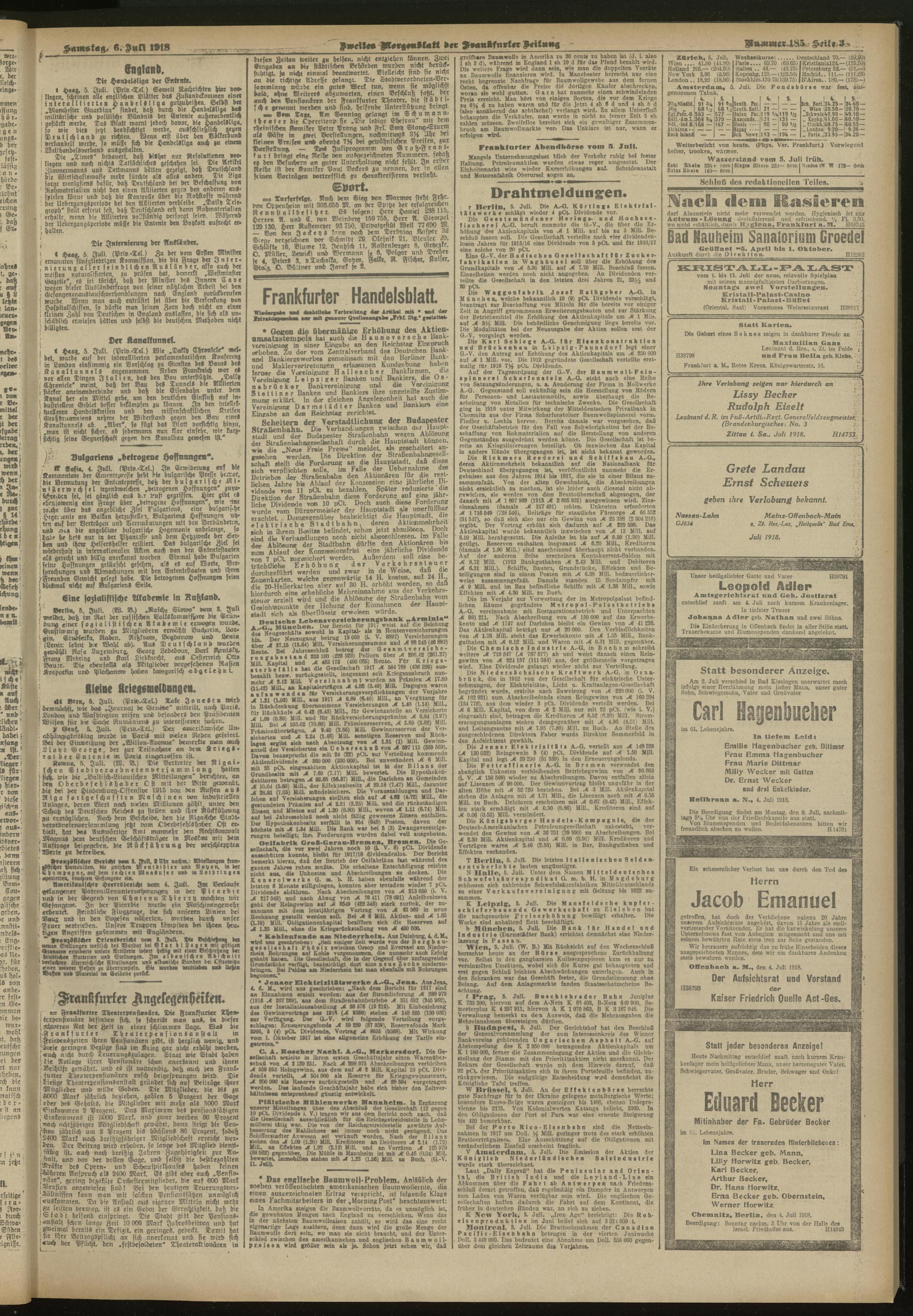 06.07.1918 = Nr. 185. Zweites Morgenblatt