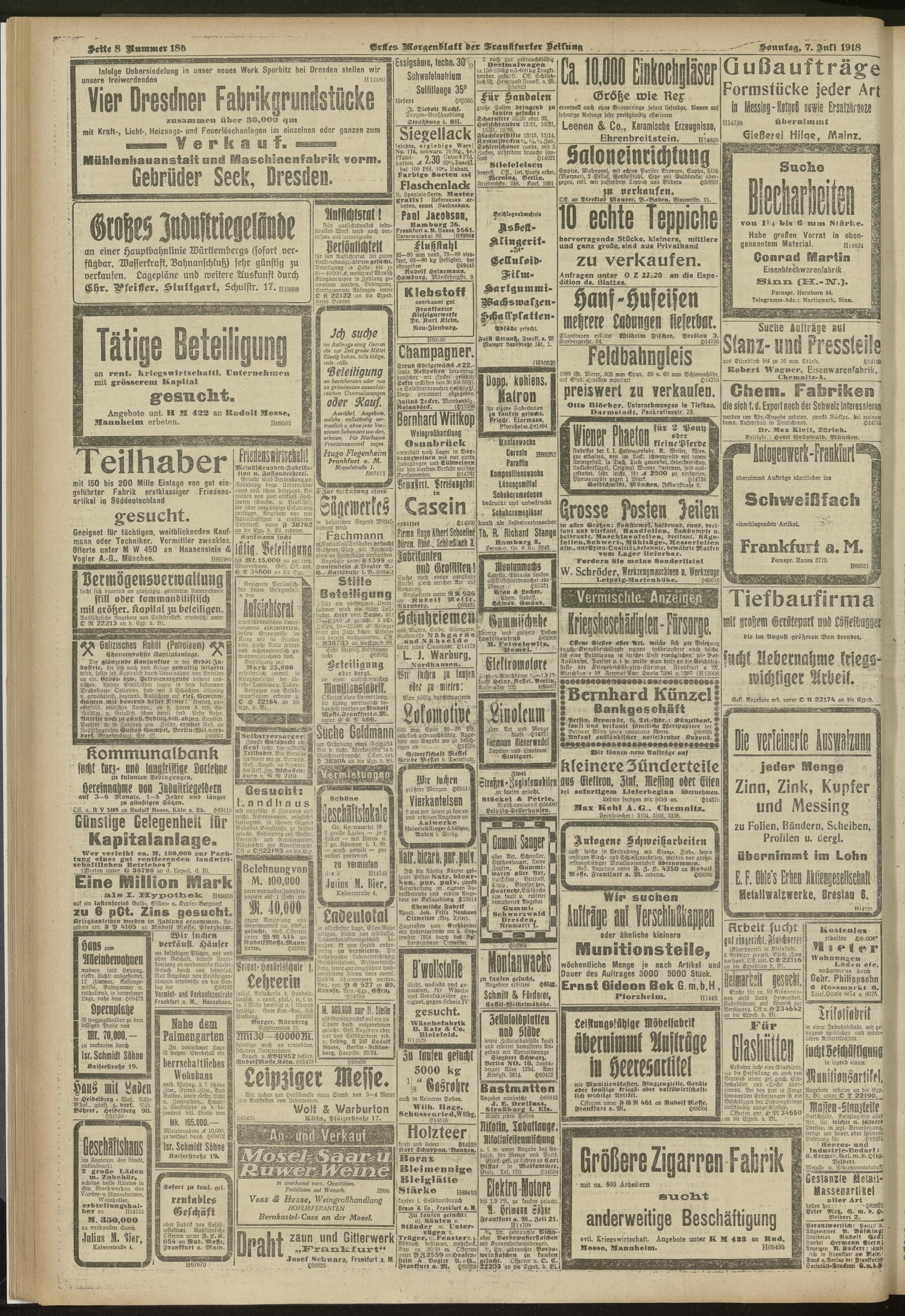 07.07.1918 = Nr. 186. Erstes Morgenblatt