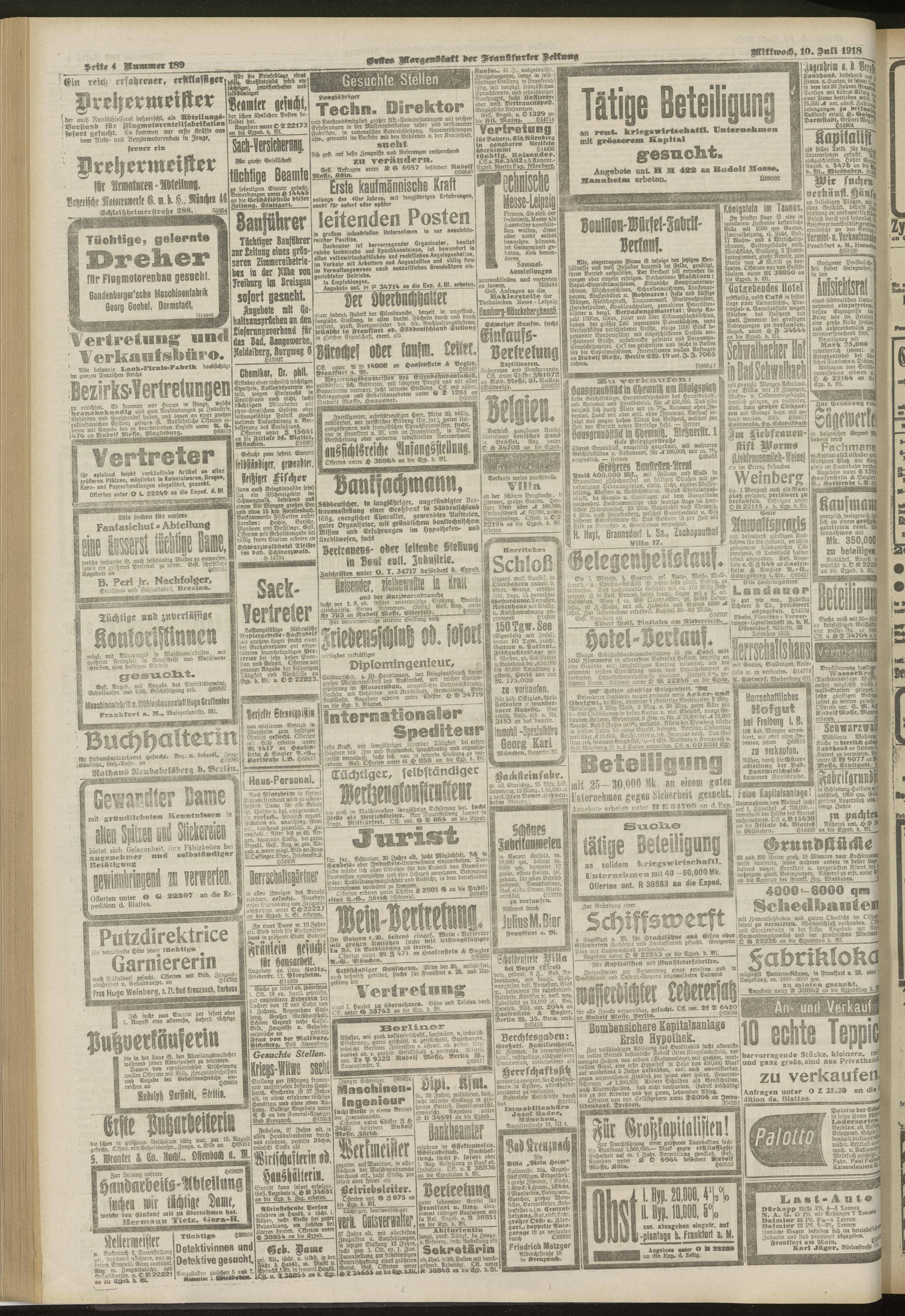 10.07.1918 = Nr. 189. Erstes Morgenblatt
