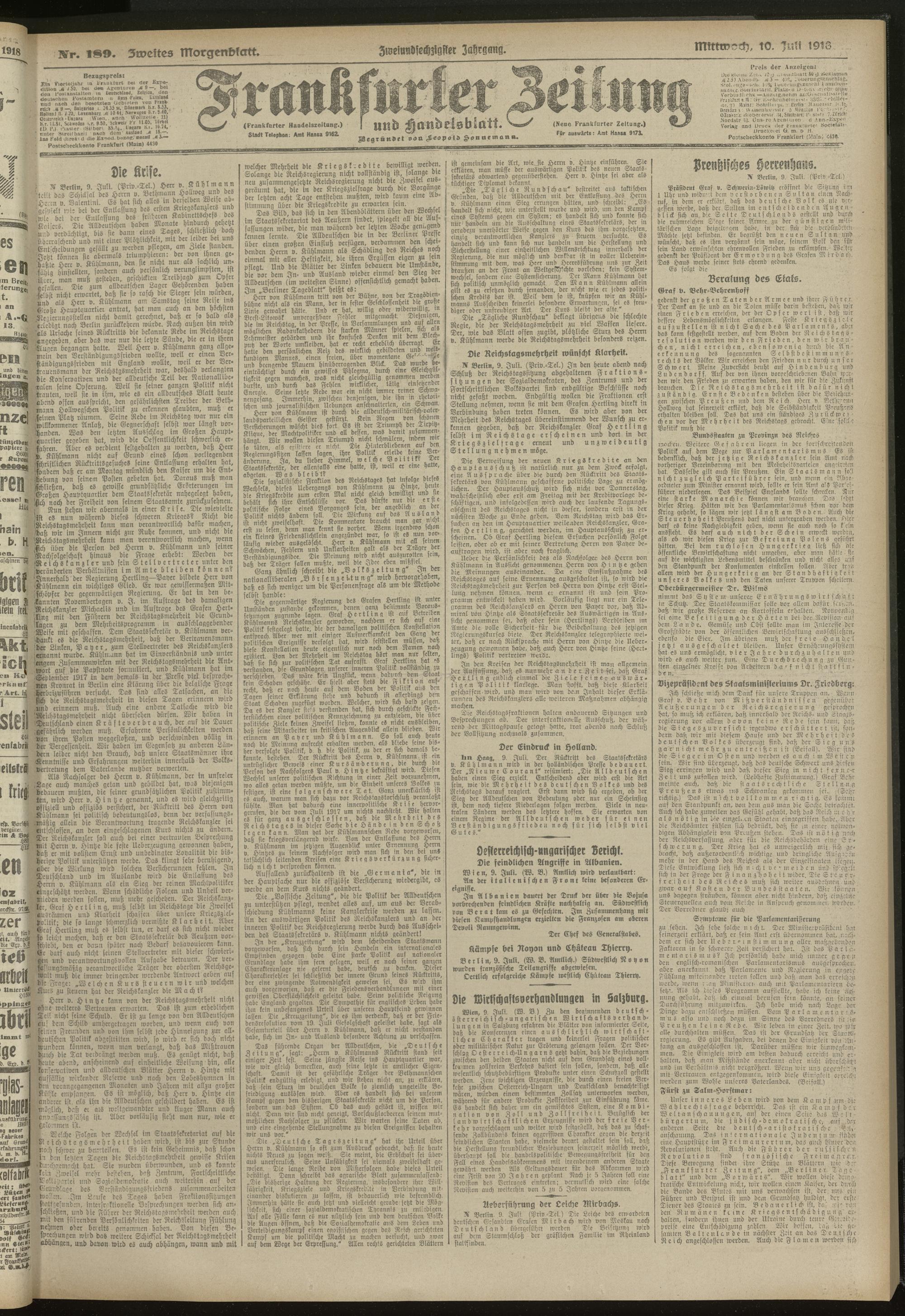 10.07.1918 = Nr. 189. Zweites Morgenblatt
