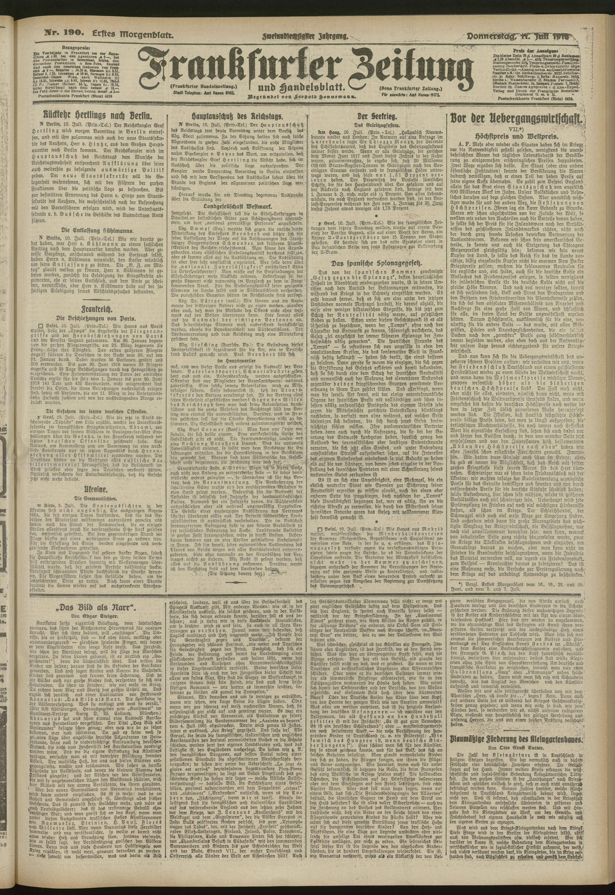 11.07.1918 = Nr. 190. Erstes Morgenblatt