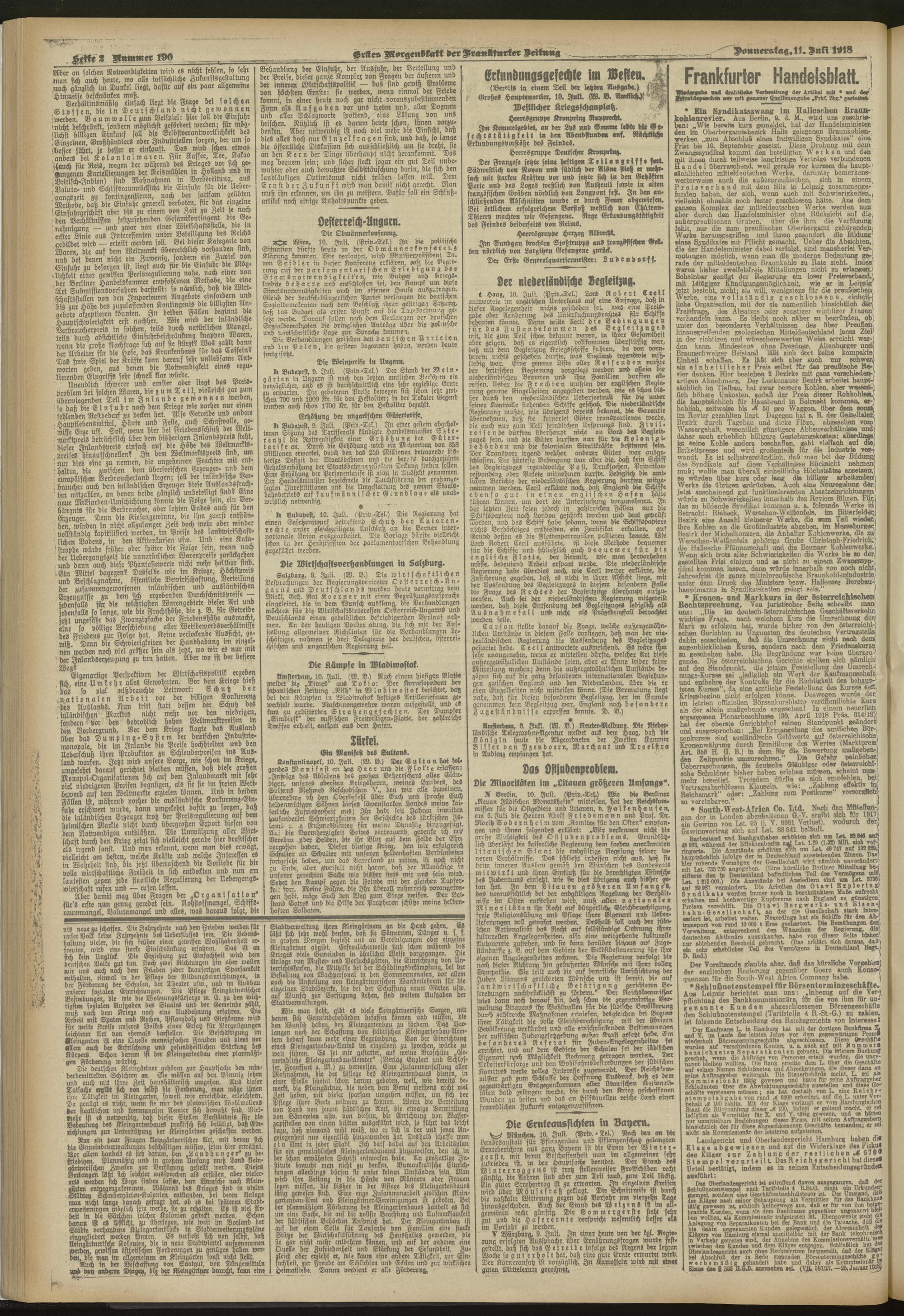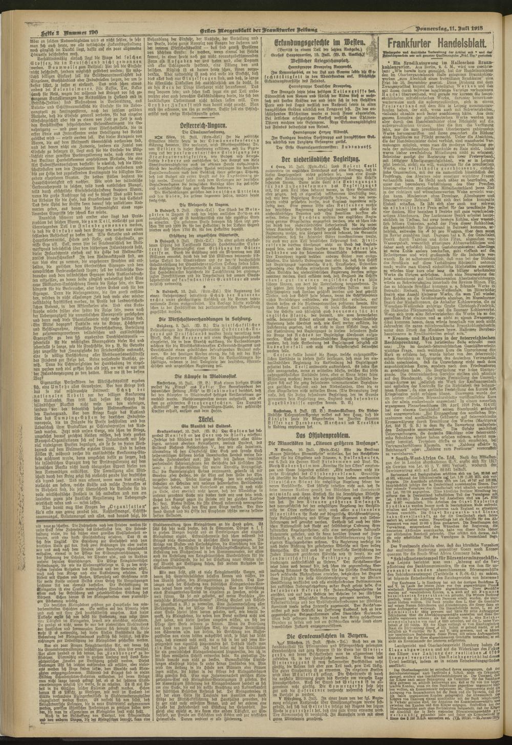 11.07.1918 = Nr. 190. Erstes Morgenblatt