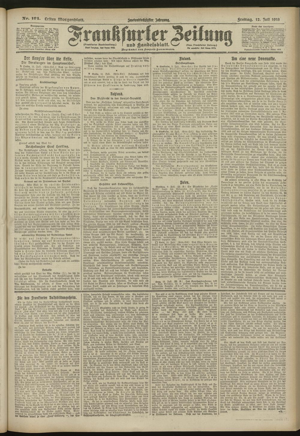 12.07.1918 = Nr. 191. Erstes Morgenblatt