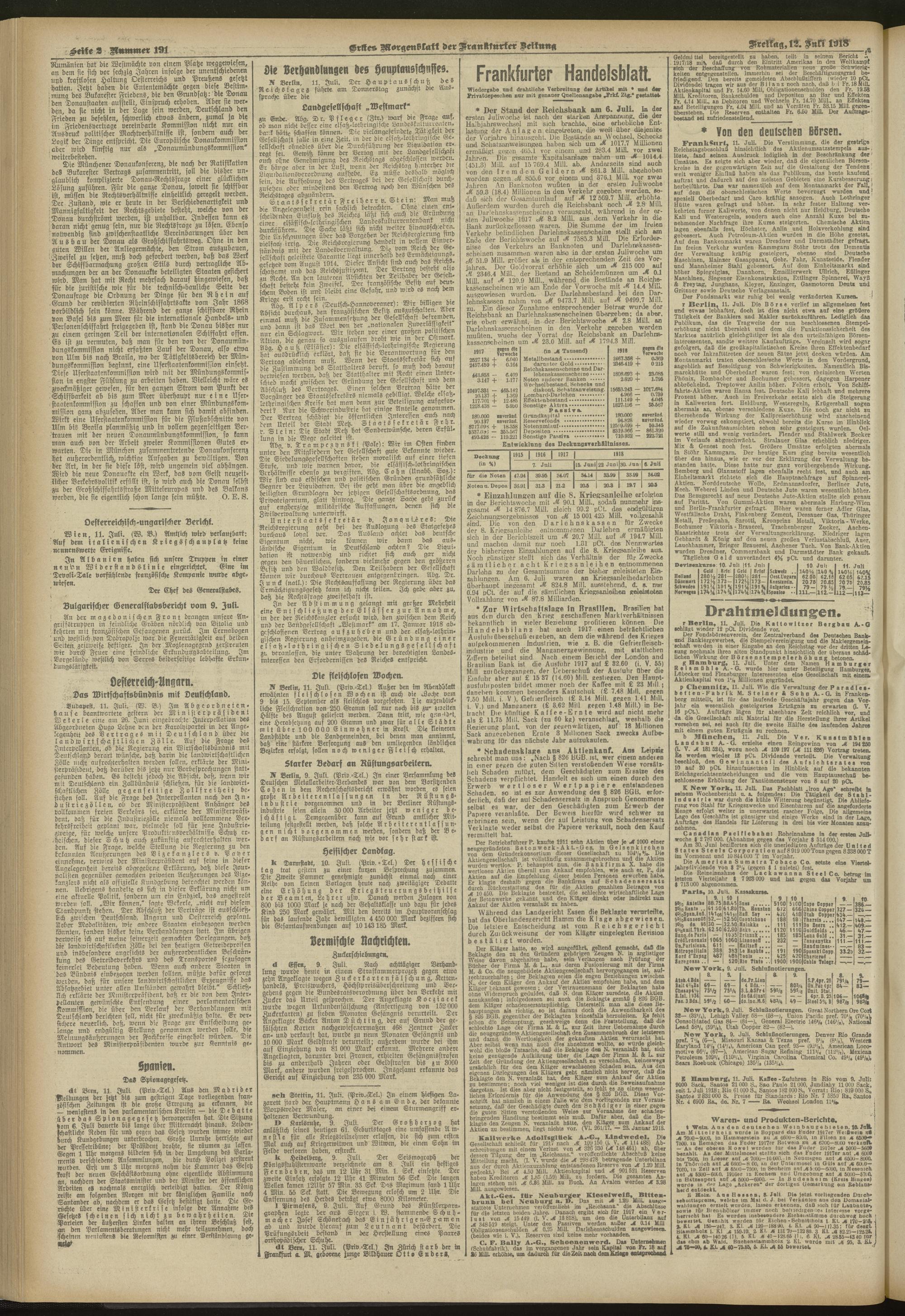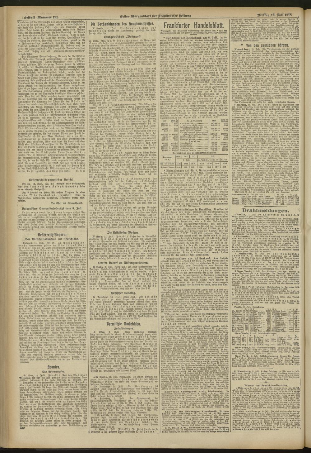 12.07.1918 = Nr. 191. Erstes Morgenblatt