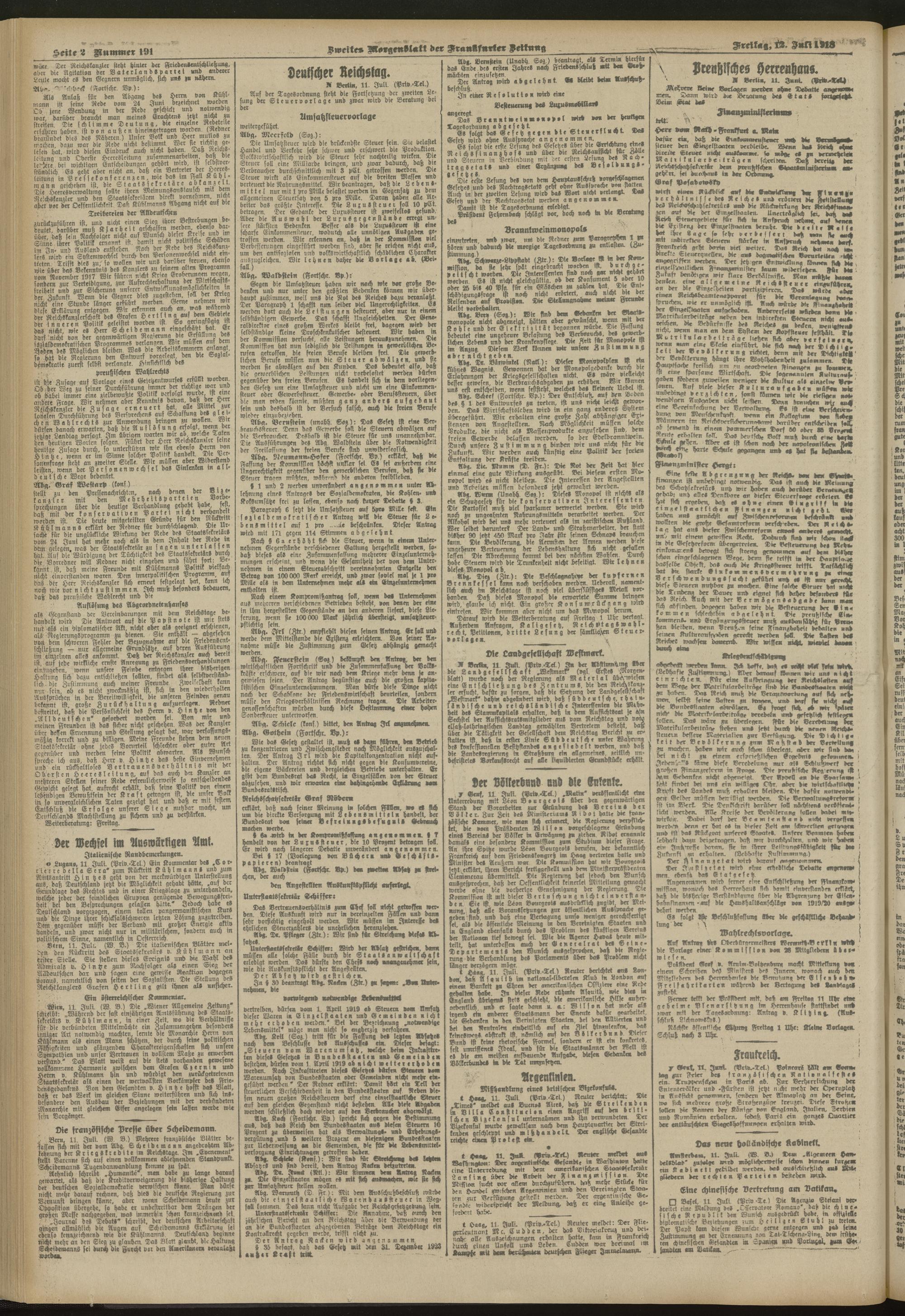 12.07.1918 = Nr. 191. Zweites Morgenblatt