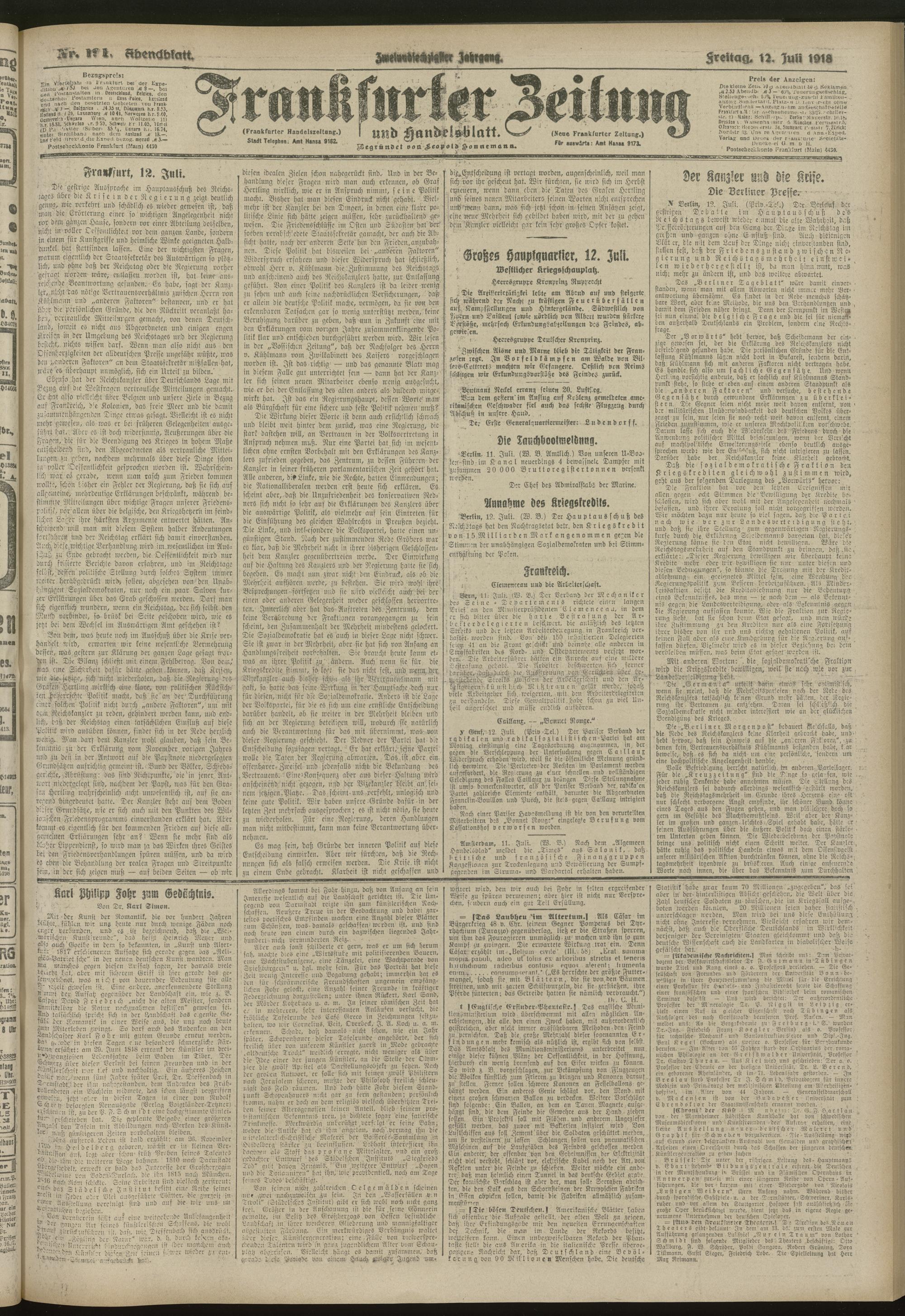 12.07.1918 = Nr. 191. Abendblatt
