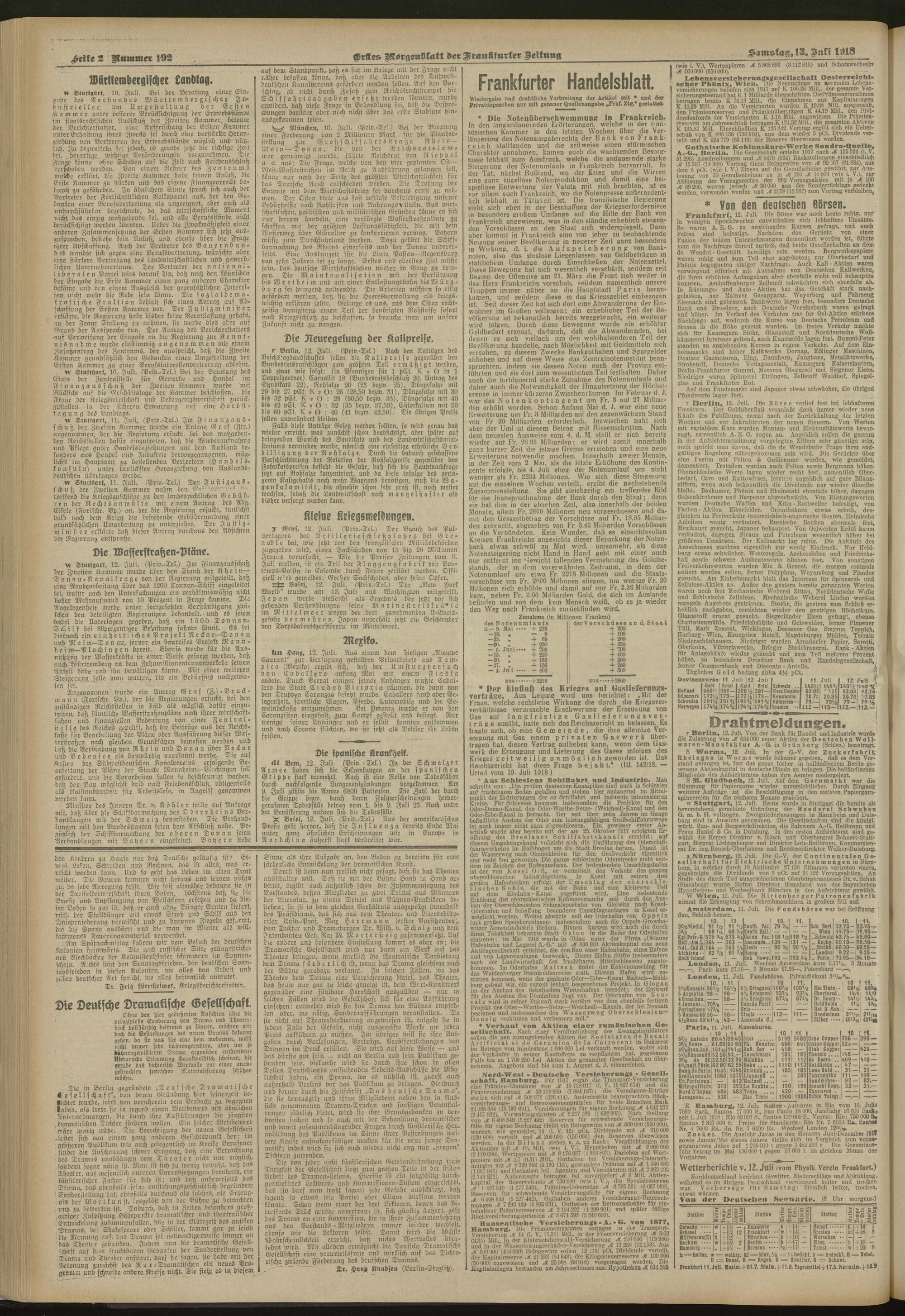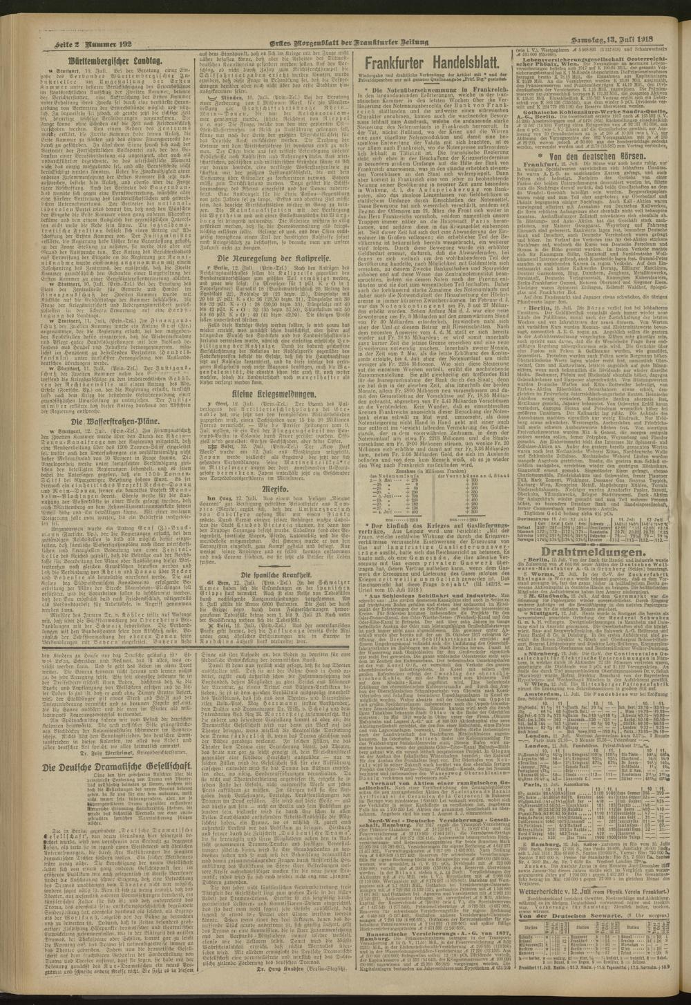 13.07.1918 = Nr. 192. Erstes Morgenblatt