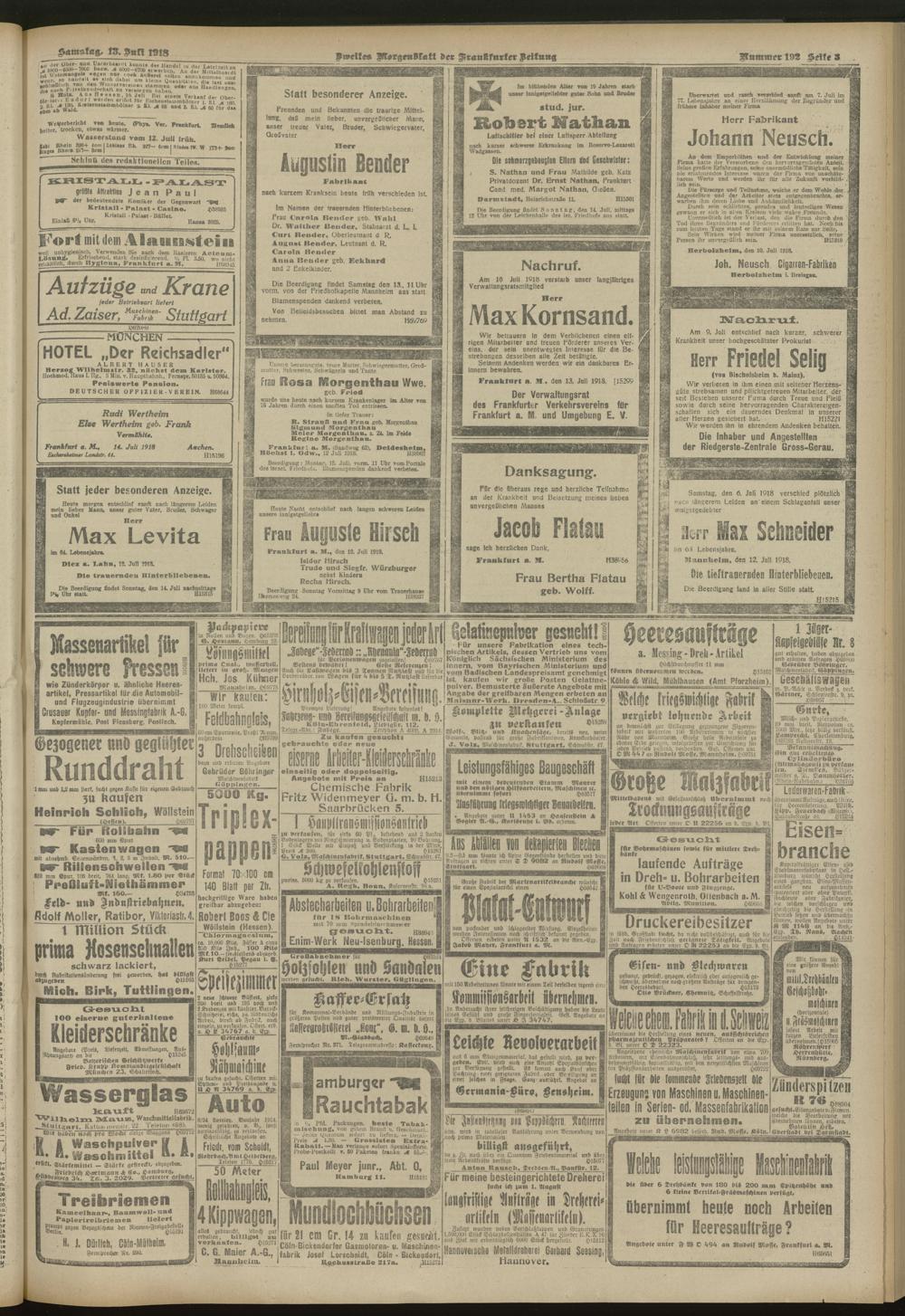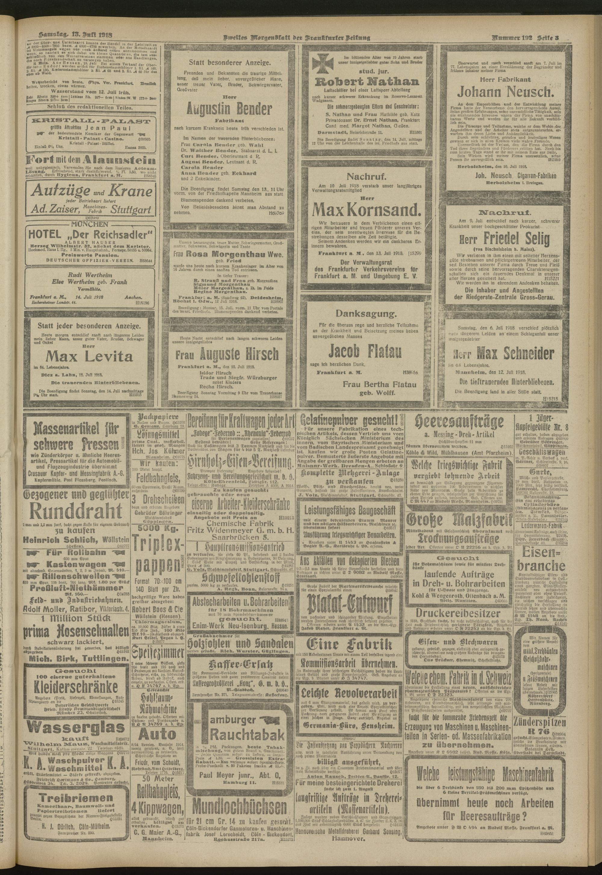 13.07.1918 = Nr. 192. Zweites Morgenblatt