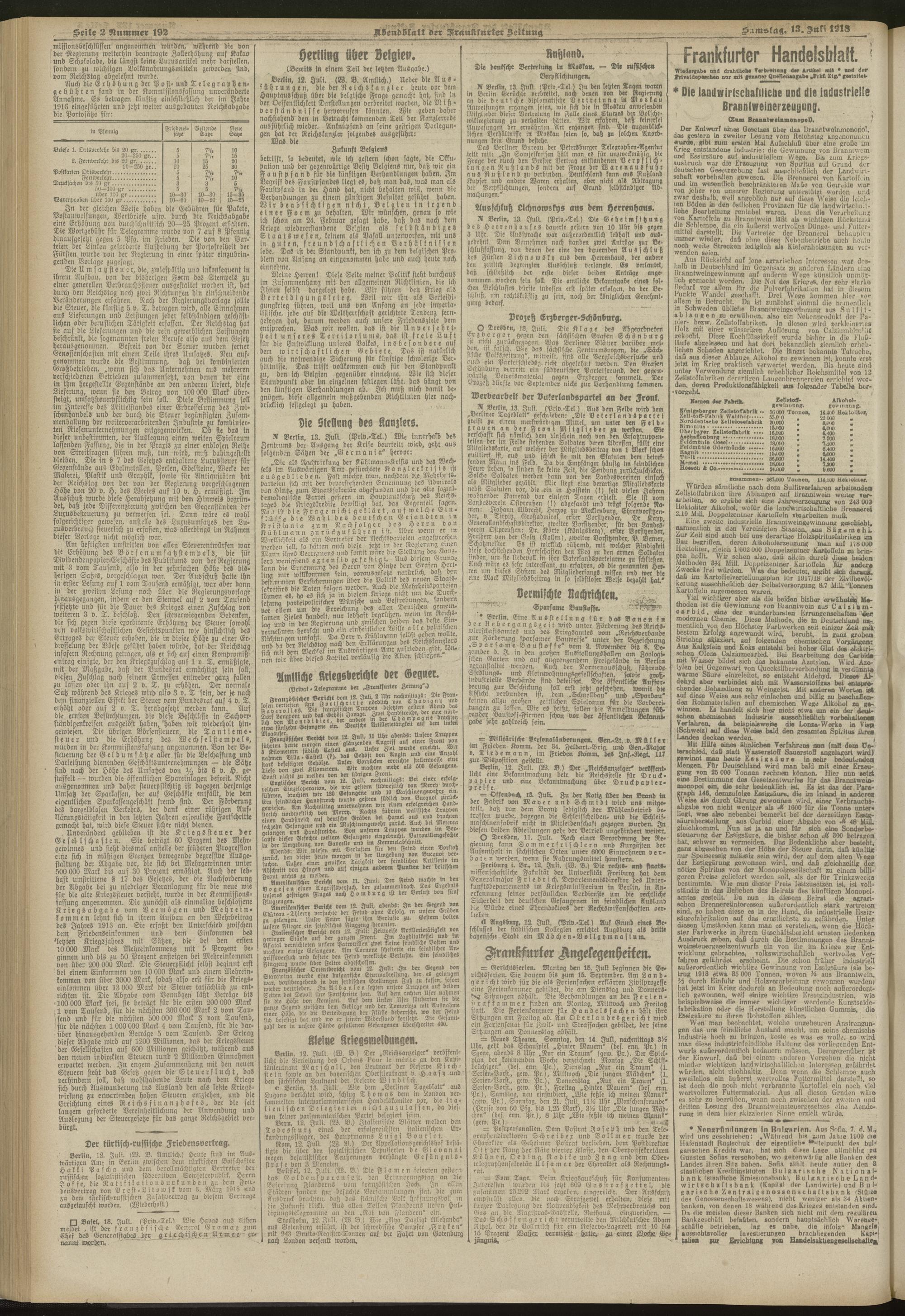 13.07.1918 = Nr. 192. Abendblatt