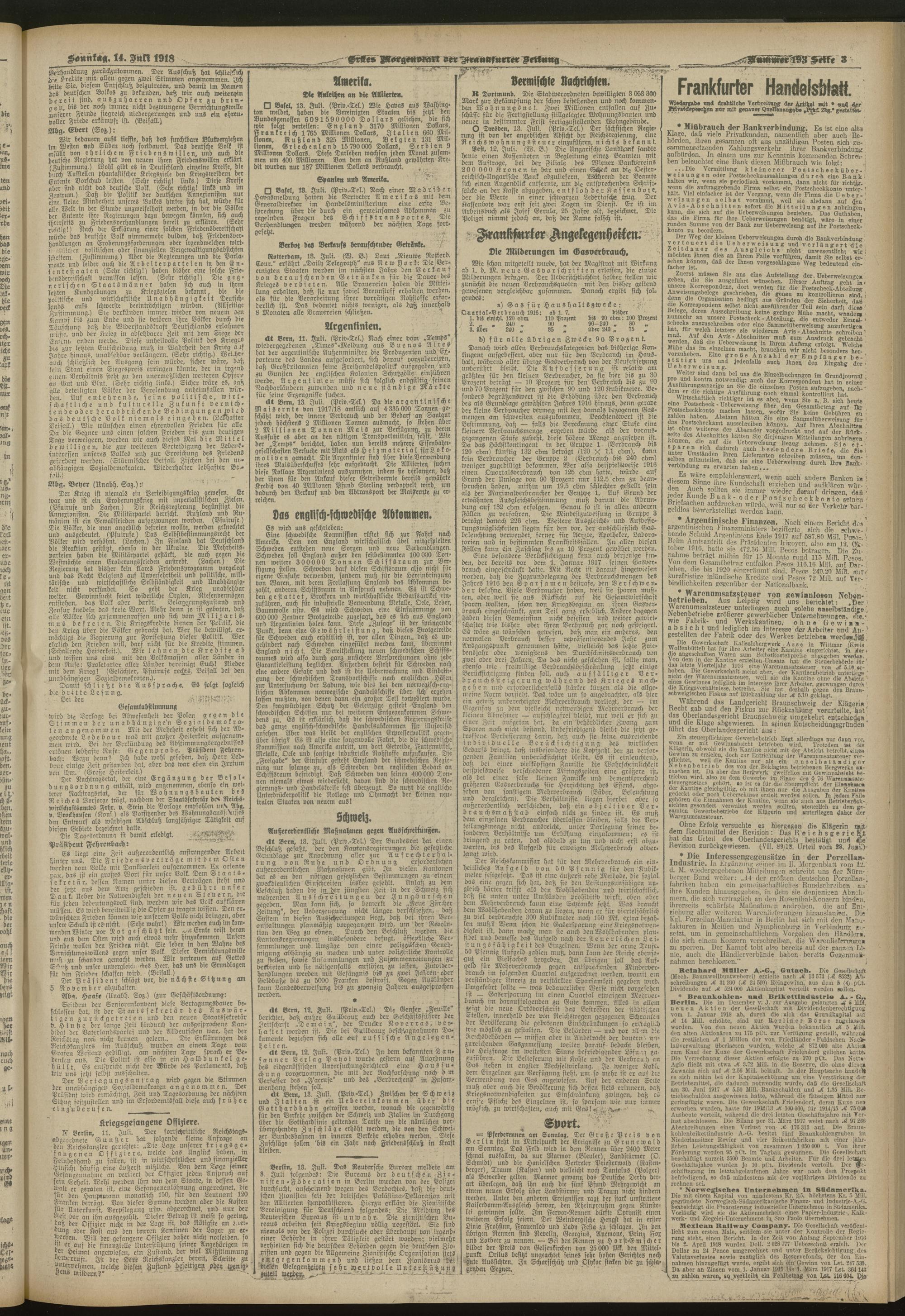 14.07.1918 = Nr. 193. Erstes Morgenblatt