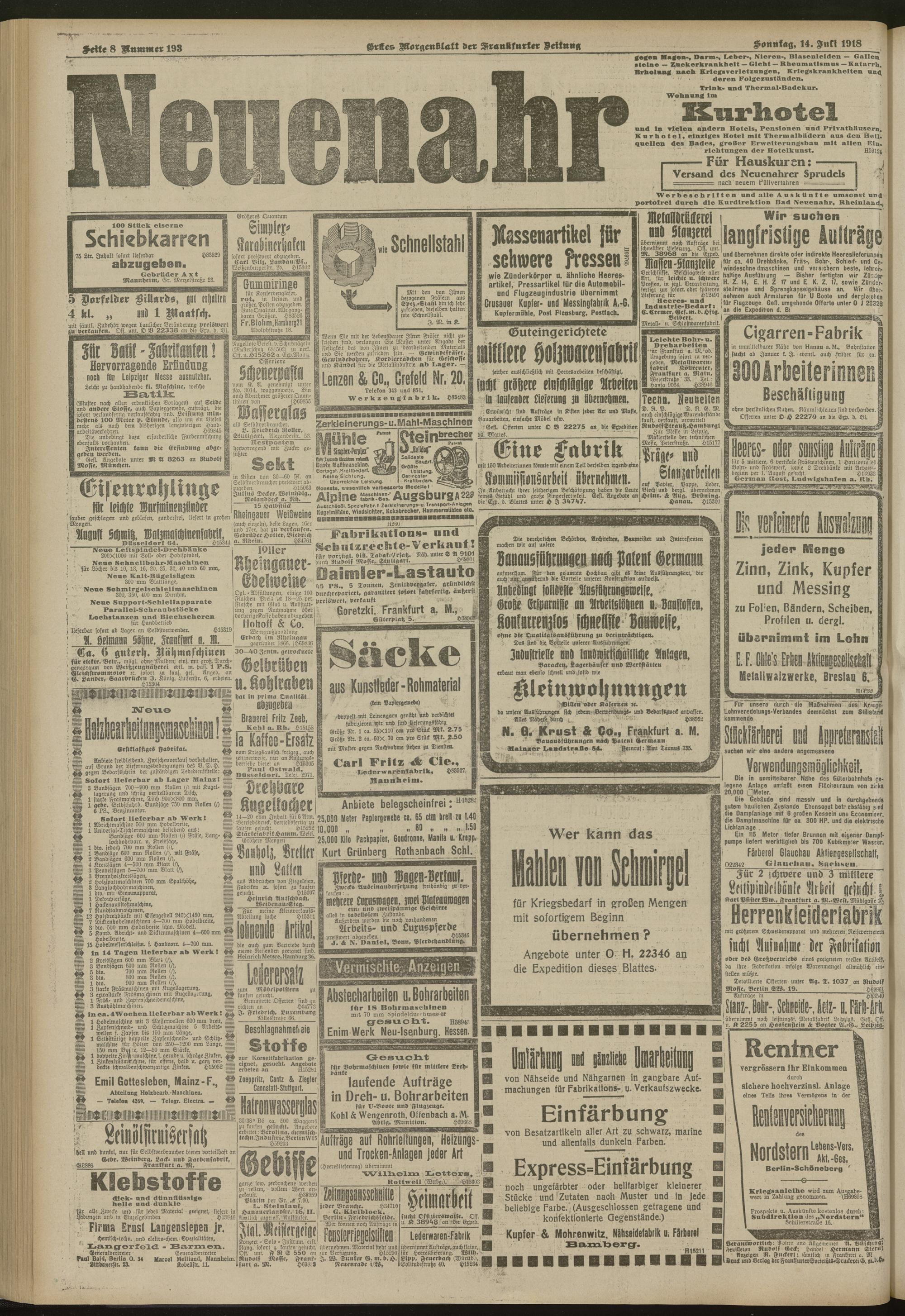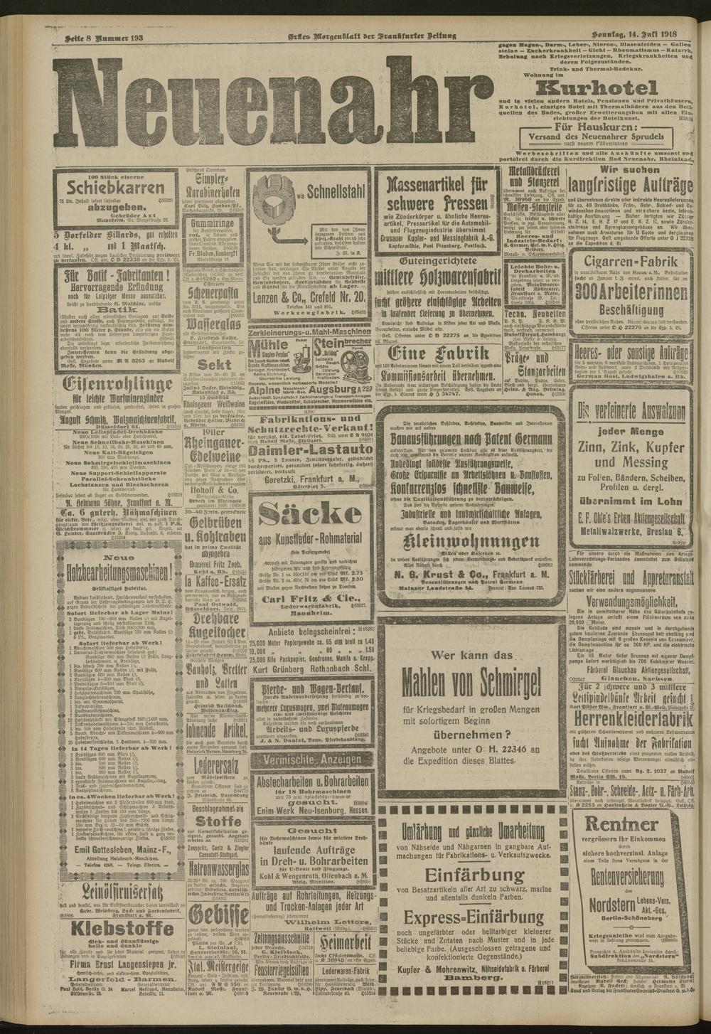 14.07.1918 = Nr. 193. Erstes Morgenblatt