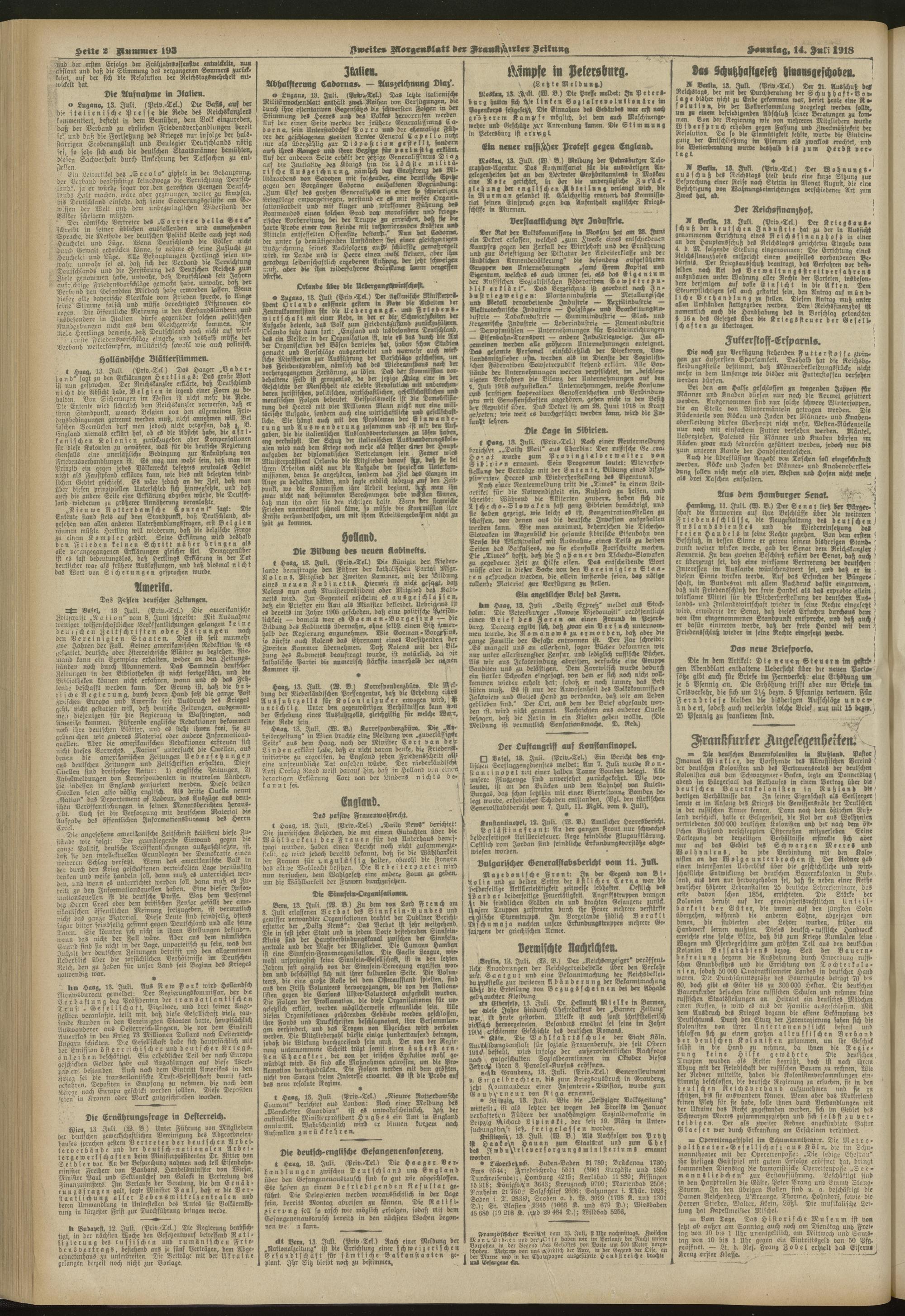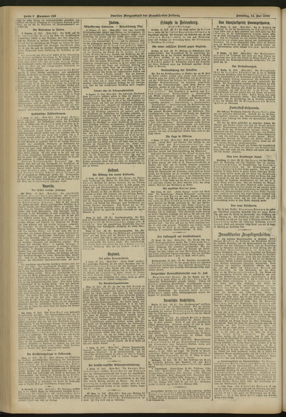 14.07.1918 = Nr. 193. Zweites Morgenblatt