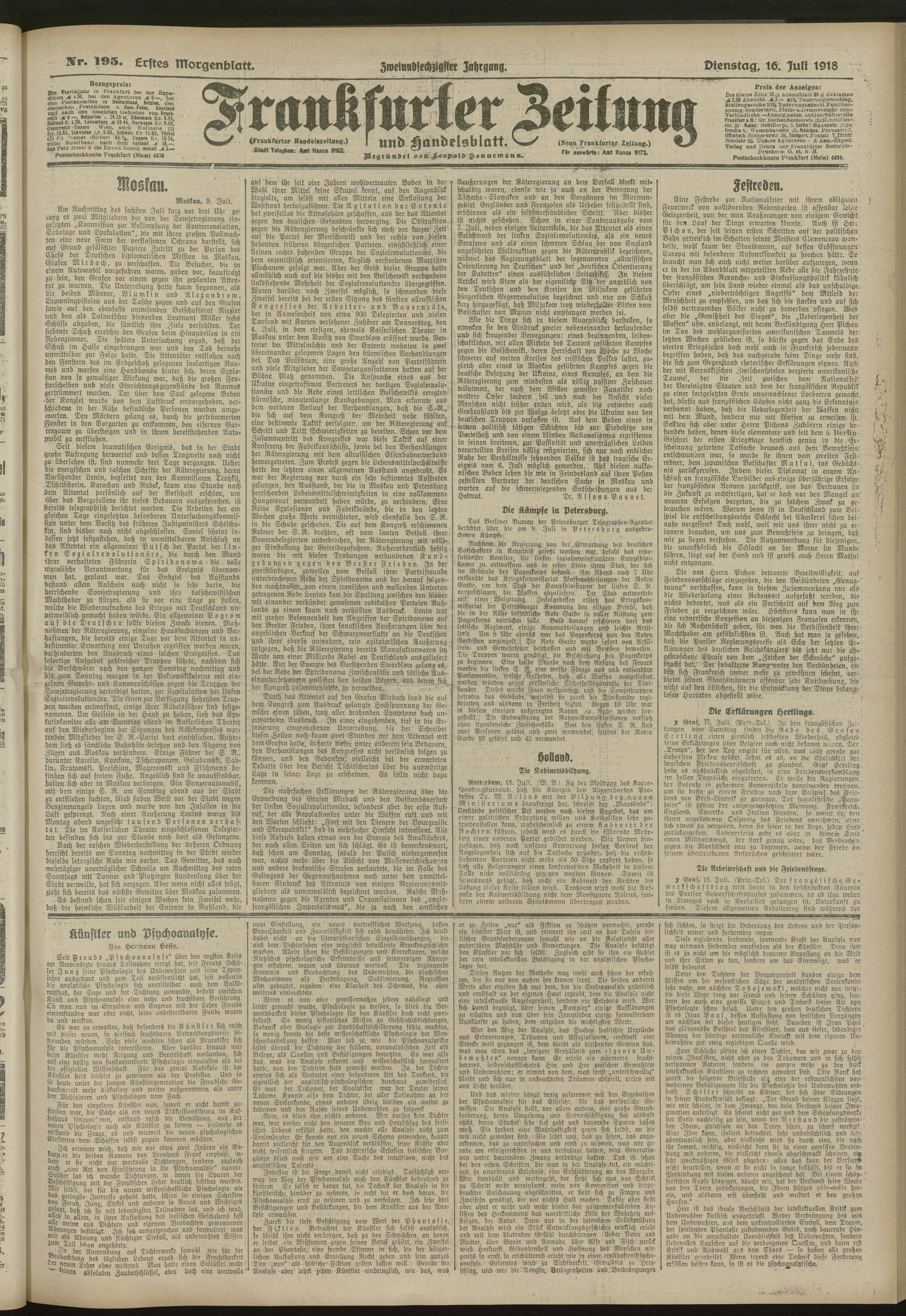 16.07.1918 = Nr. 195. Erstes Morgenblatt