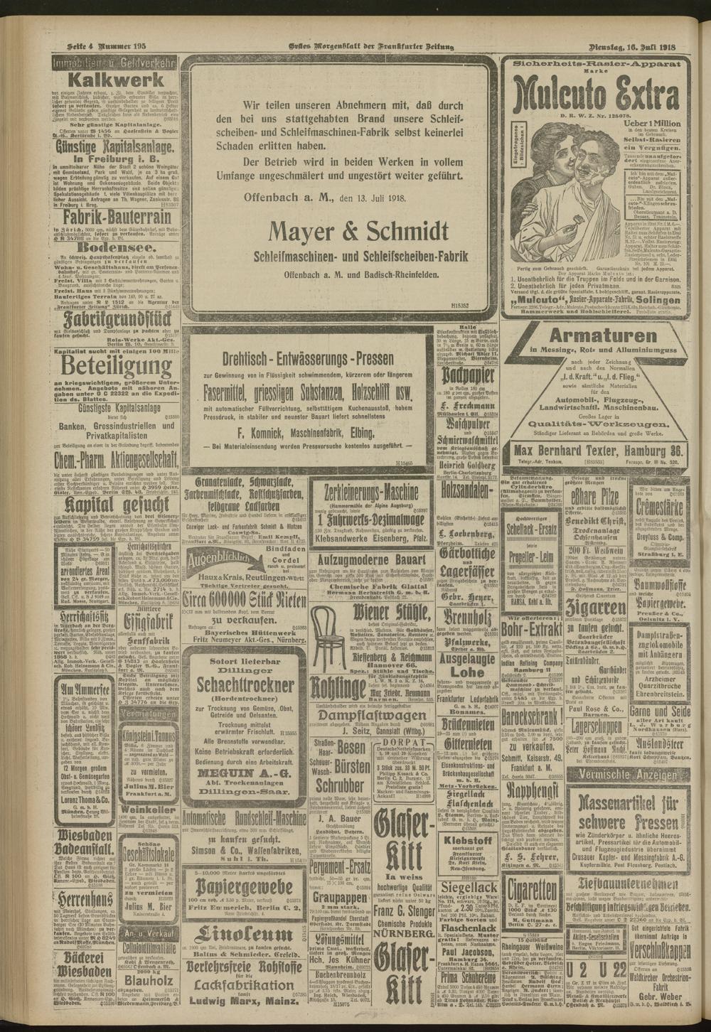 16.07.1918 = Nr. 195. Erstes Morgenblatt