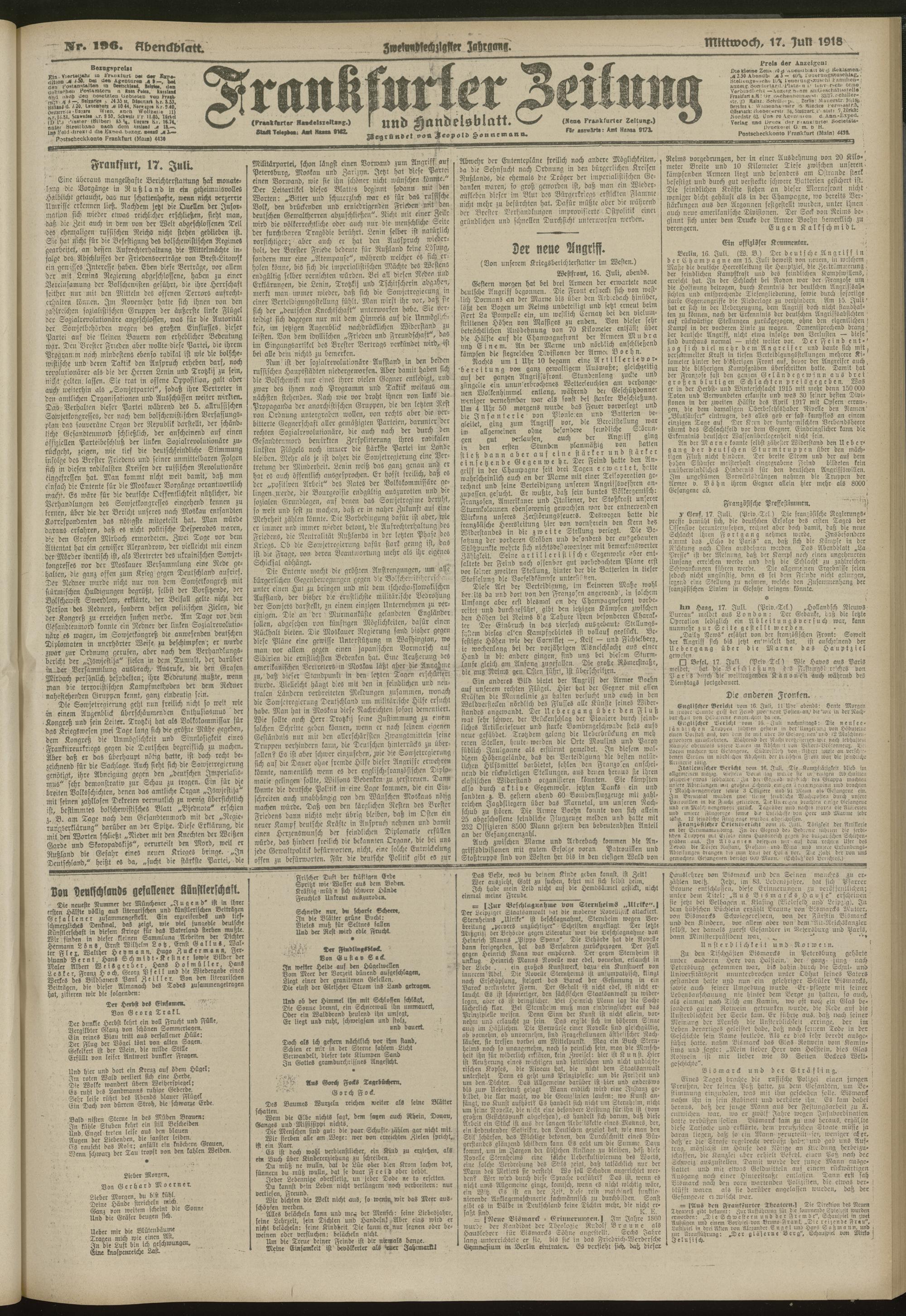 17.07.1918 = Nr. 196. Abendblatt