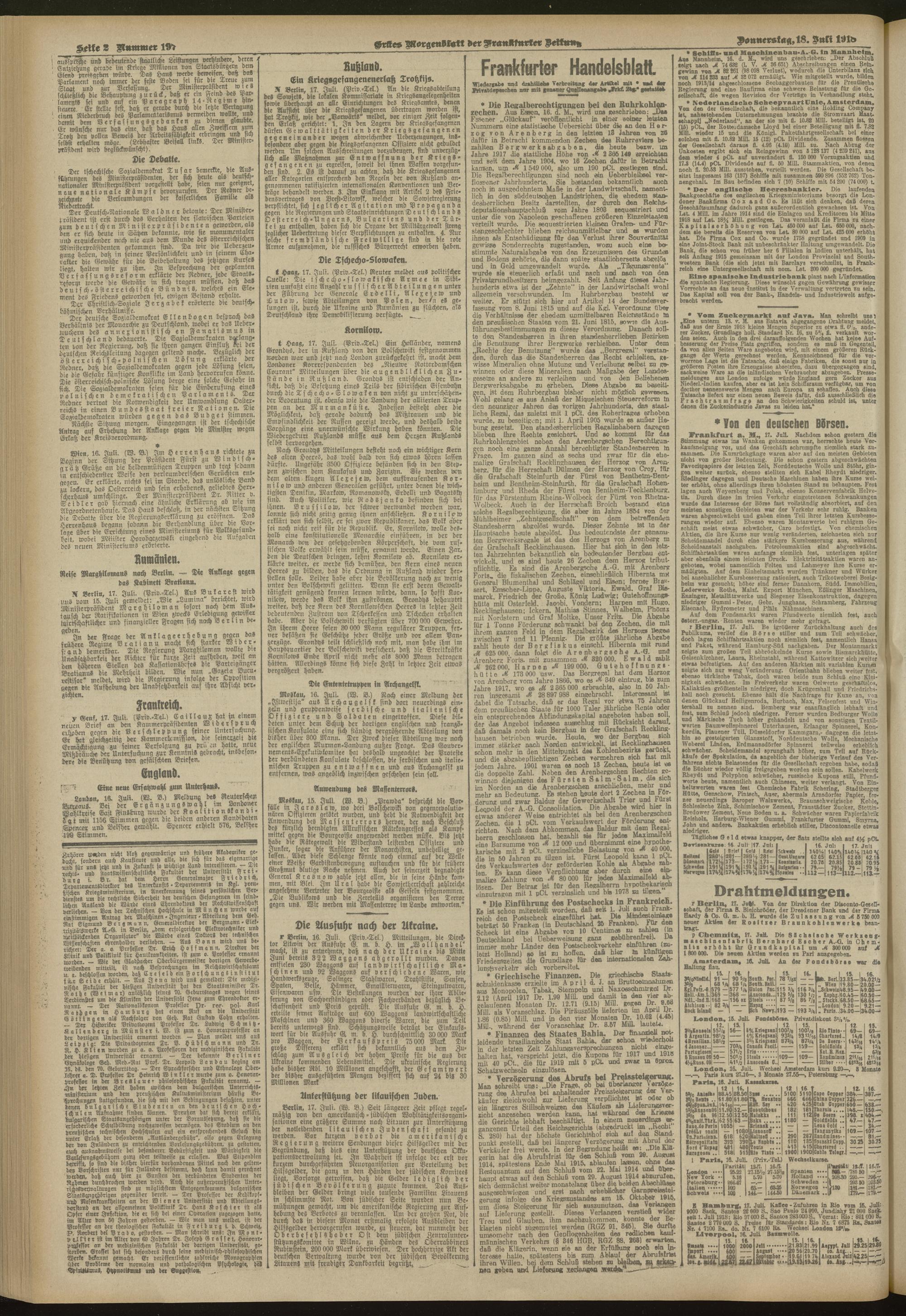 Frankfurter Zeitung und Handelsblatt. 18...